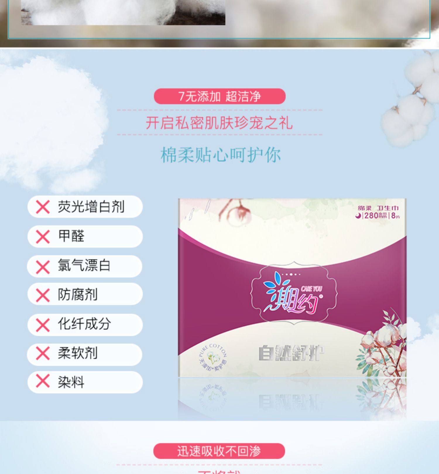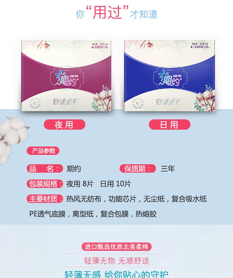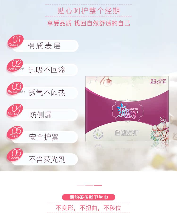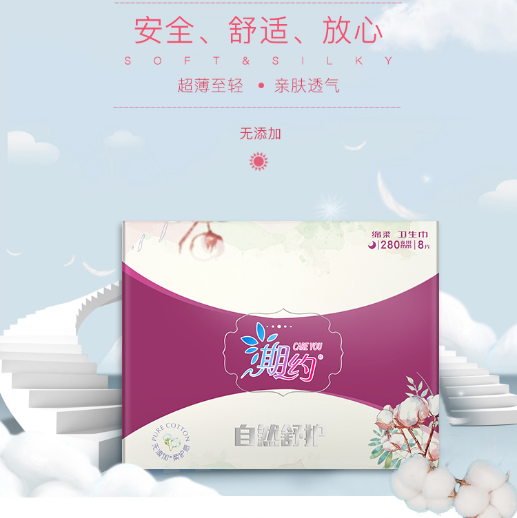 全新透气卫生巾,日用、夜用、迷你等五大系列搭配,厚度低至0.1cm,方便随身携带,绵柔致薄~高透底膜~自由自在!