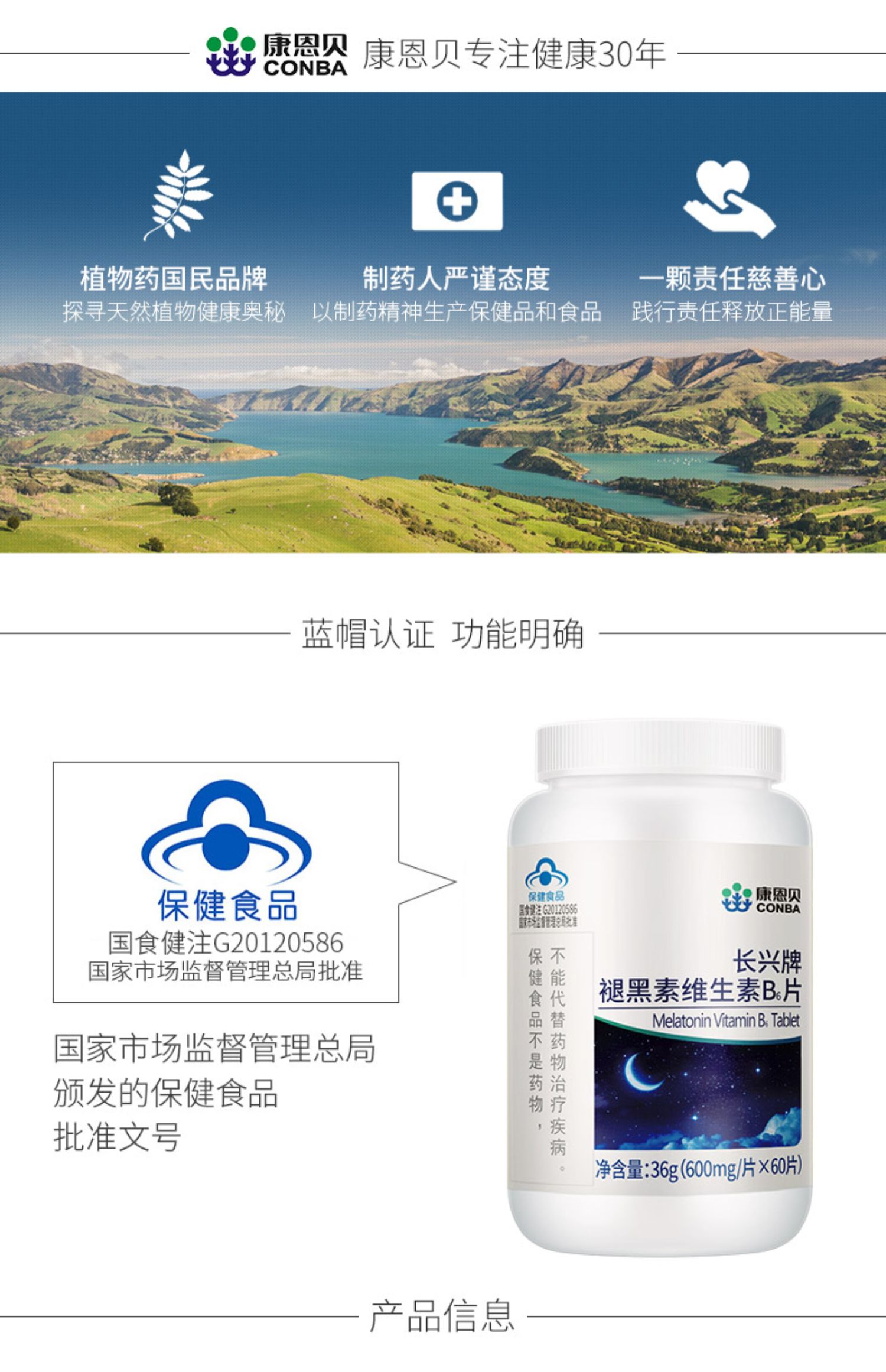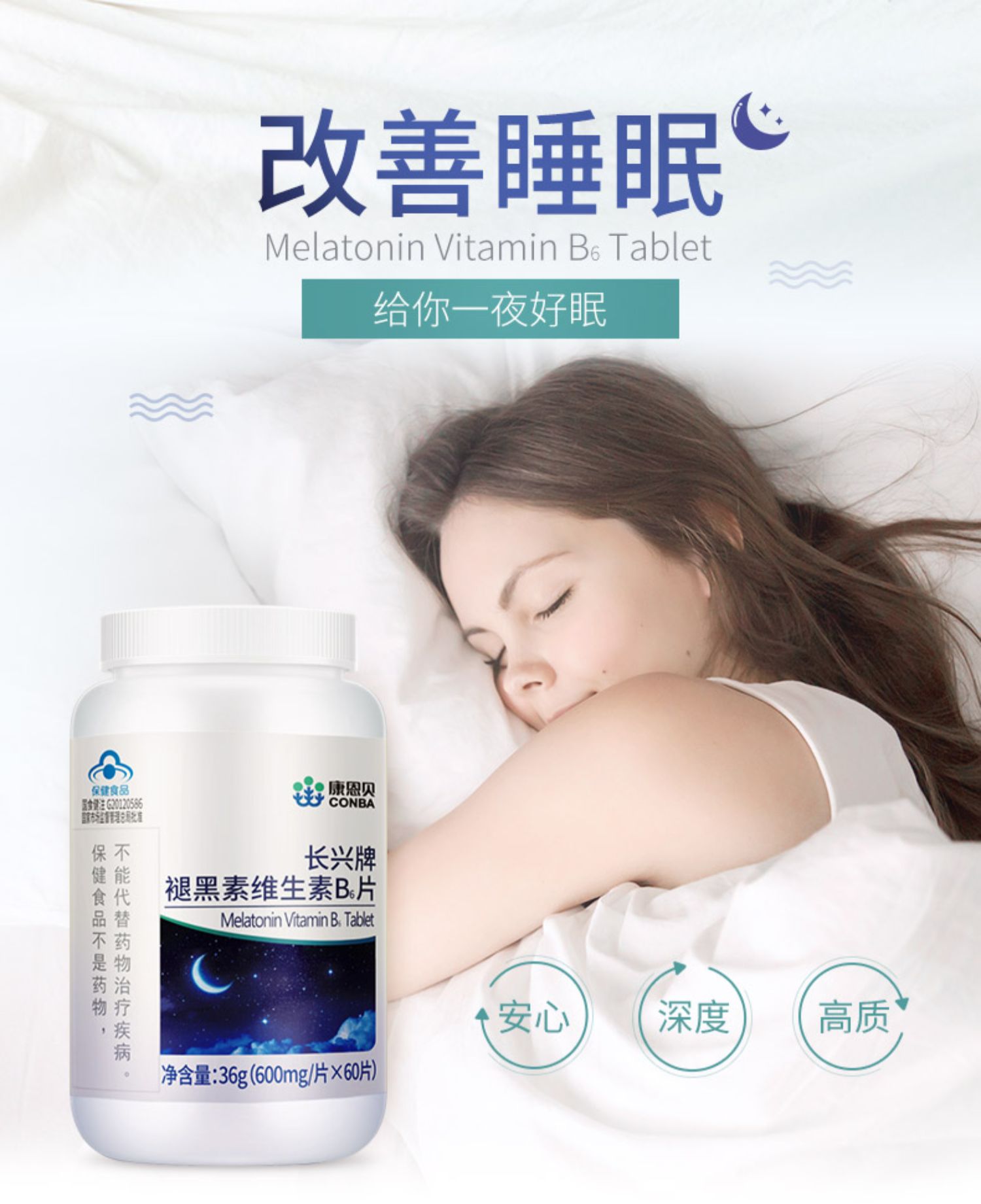康恩贝褪黑素维生素b6助眠退黑素片
