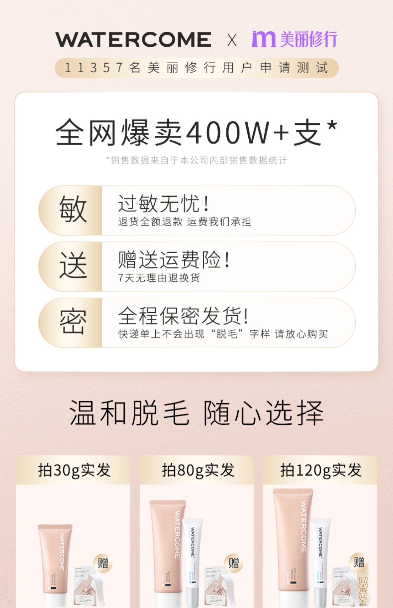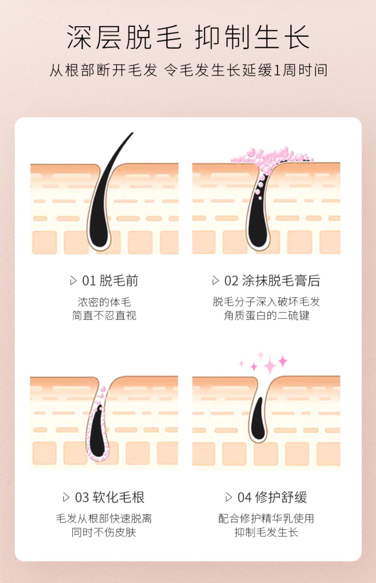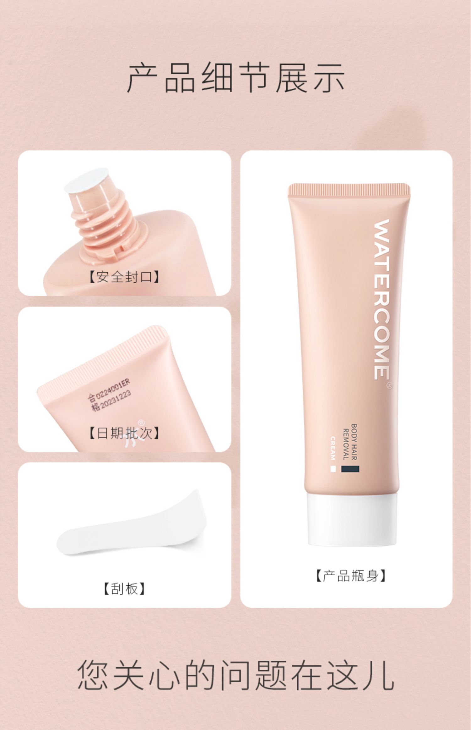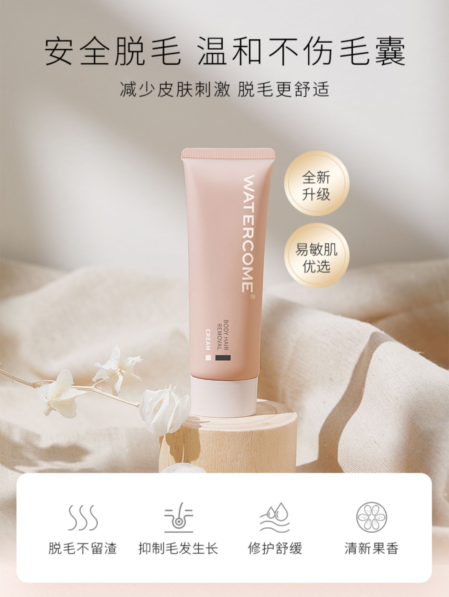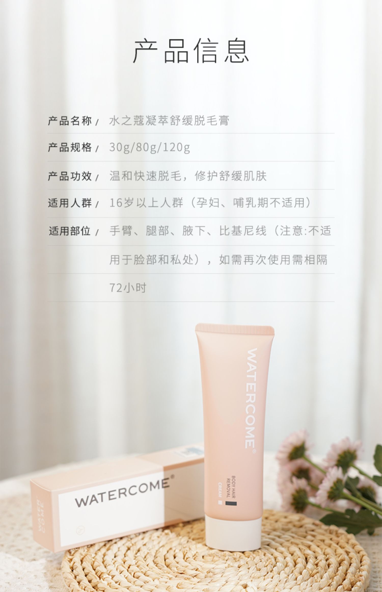 水之蔻脱毛膏,爆卖400W+,天然植物卒取成分,安全提取,温和不刺激,轻薄乳液质地,一抹推开,自然清新果香,保湿滋养,敏感肌肤适用!你和光滑如丝的肌肤,只差这一步~