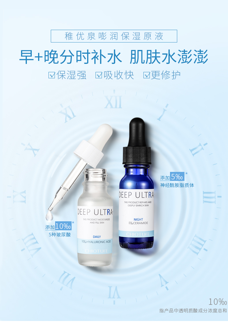 【早+晚分时补水】稚优泉嘭润保湿原液?日间补水,10%玻尿酸深入肌底,补充水份。夜间修护?5‰神经酰胺脂质体,修护肌肤。不添加酒精,不含重金属,不含致病菌不含防腐剂!早晚分时补水【过敏包赔】