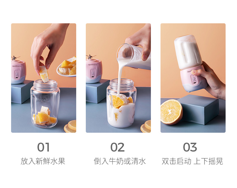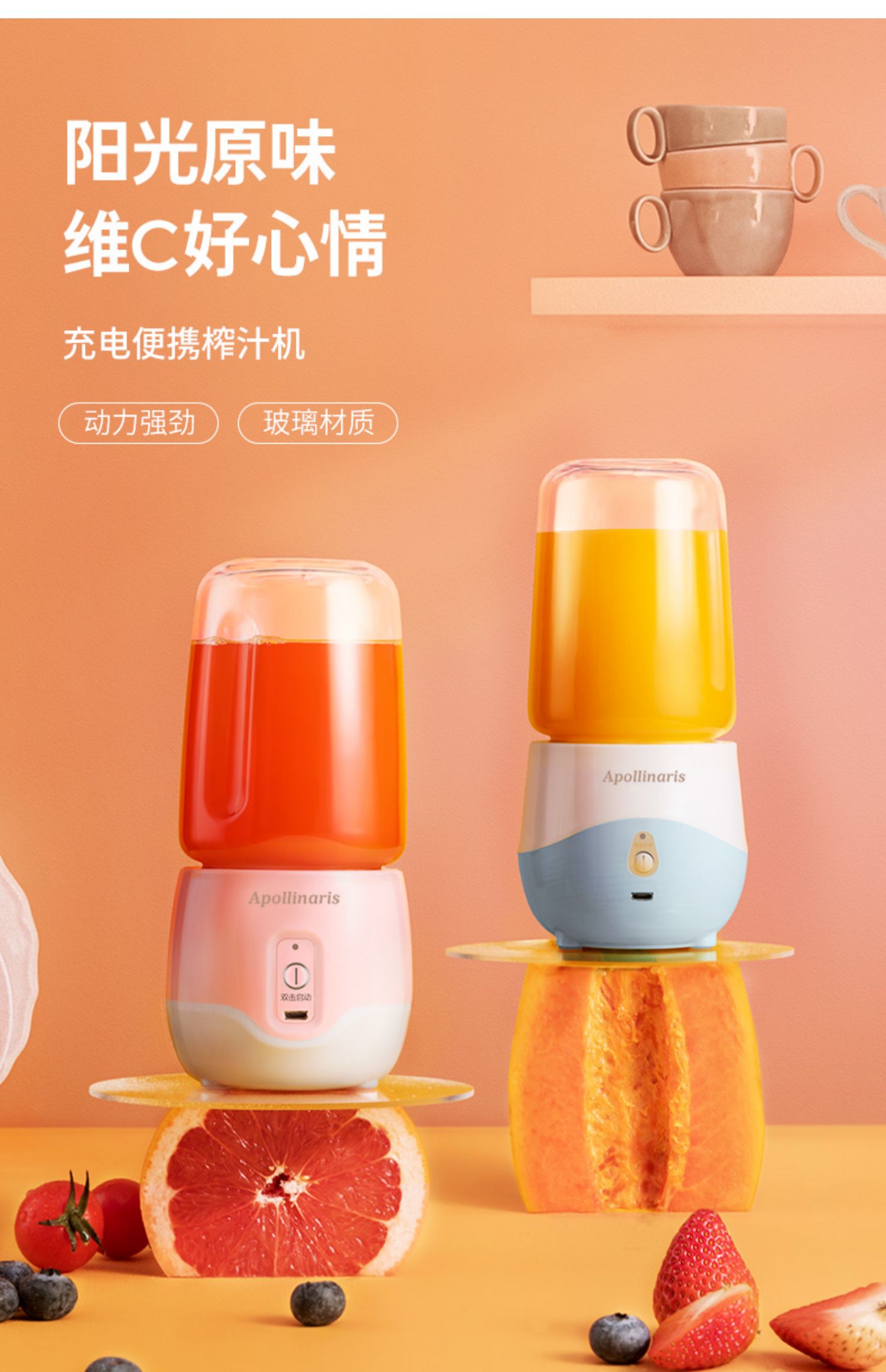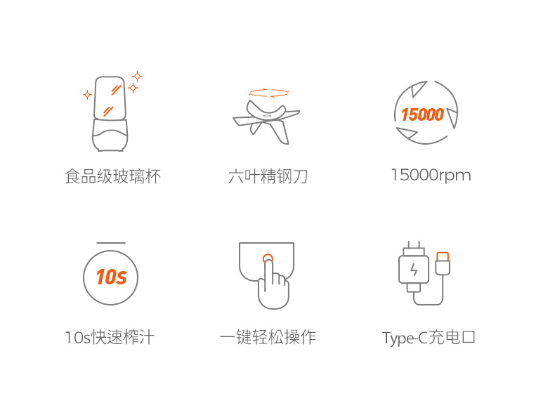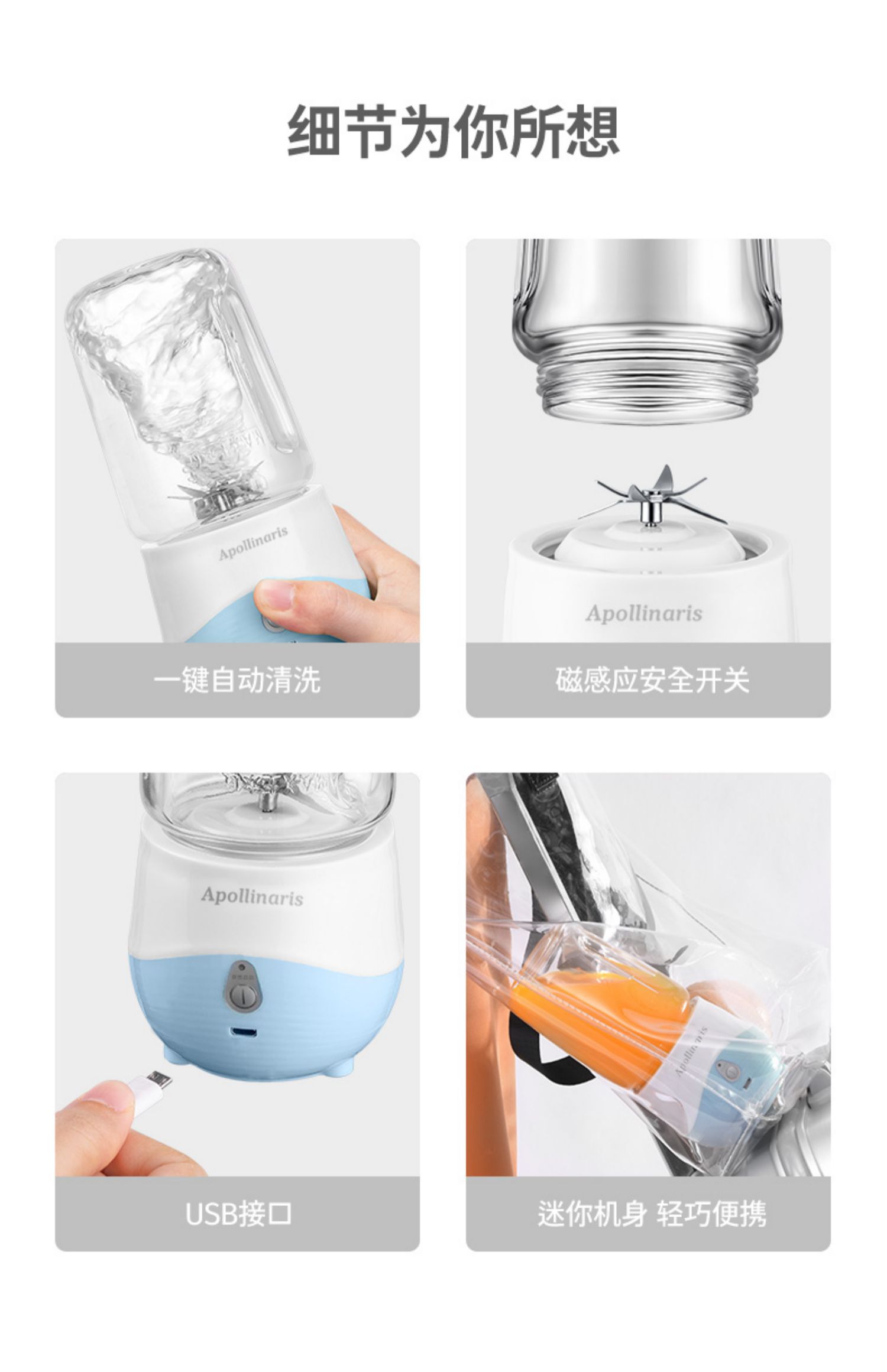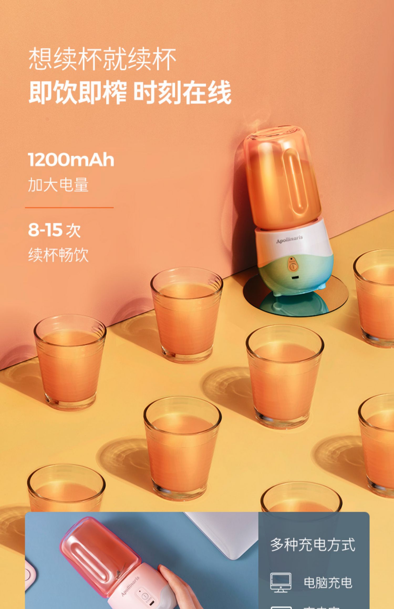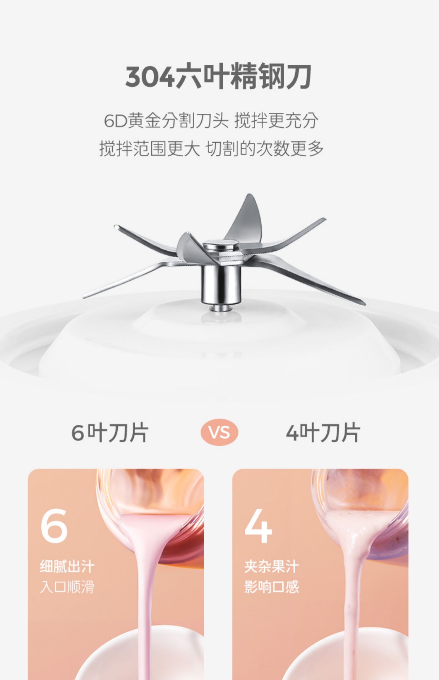 【火爆大卖,天猫促销,亏本跑量14.9,1年免费换新,四叶刀头】搅打彻底,食品级材质的杯体,不爆裂,耐摔耐撞,一次充电约可榨10杯,长按两秒启动,快速榨汁,口感细腻顺滑