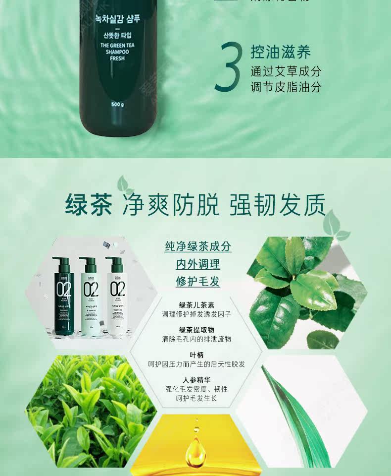 爱茉莉集团海外旗舰店,韩国本土化妆品集团出品的爱茉诗02绿茶防脱发控油洗发水~绿茶精华,水油平衡,强健发根,深层滋养~