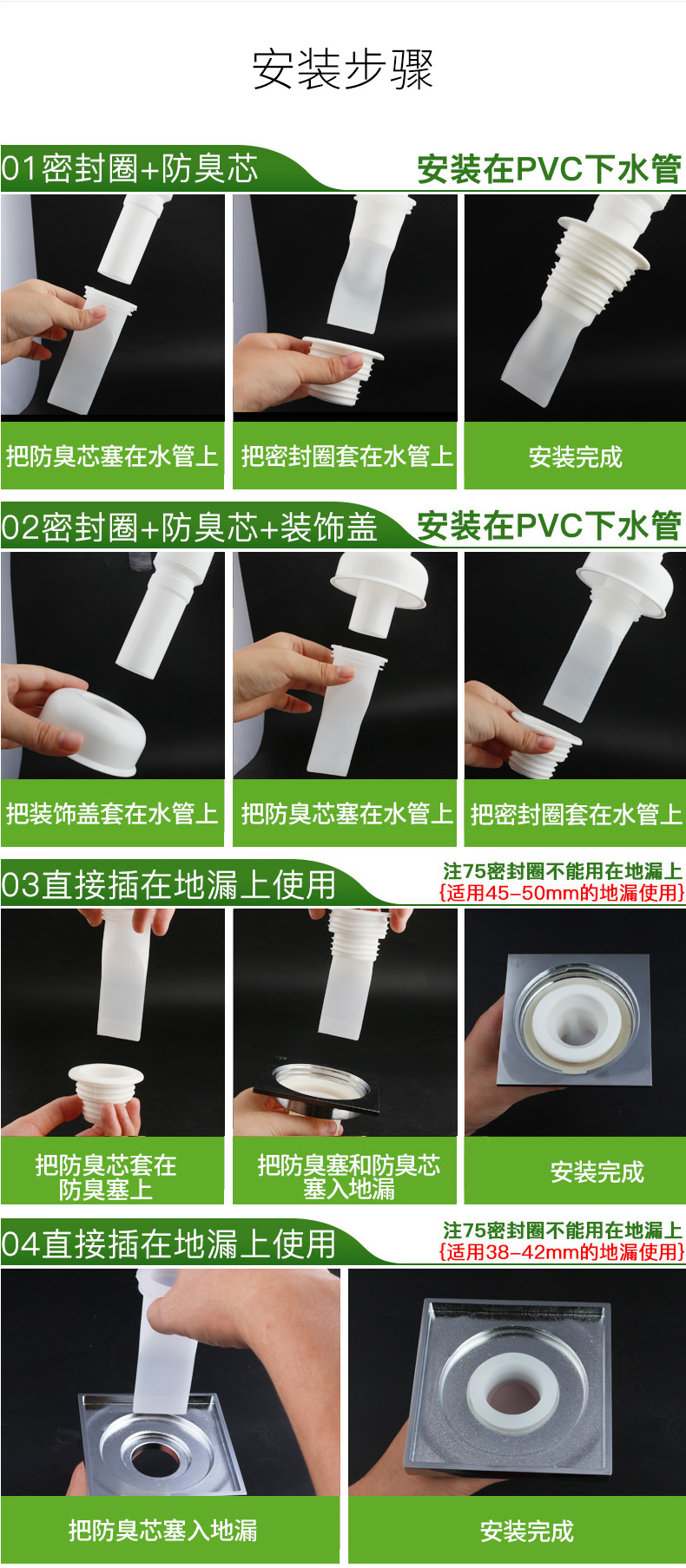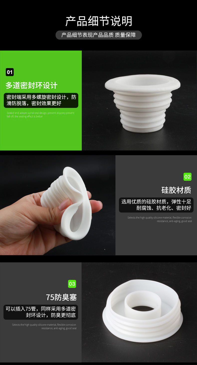 【密封塞+装饰盖+硅胶芯】夏天快到了,又要到了蚊虫乱飞的季节,看看这,快备上吧,厨房下水管防臭密封圈防臭塞,密封性好,安装方便,即插即用,美观耐用,为您解决困扰,适合多种管径,快抢!!!