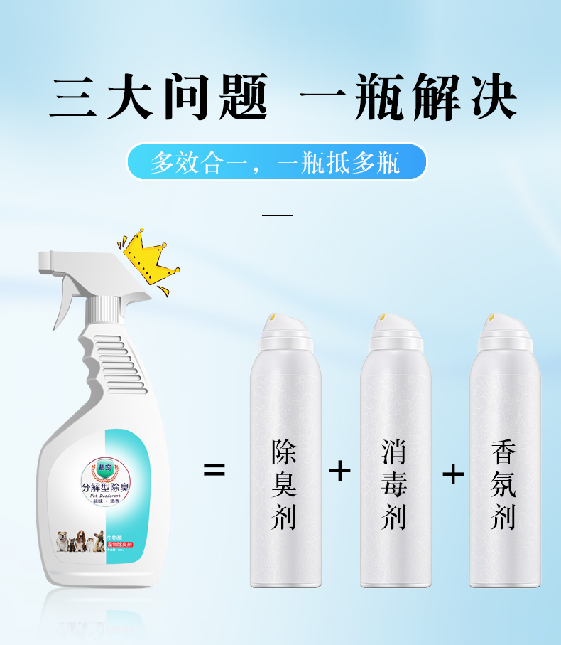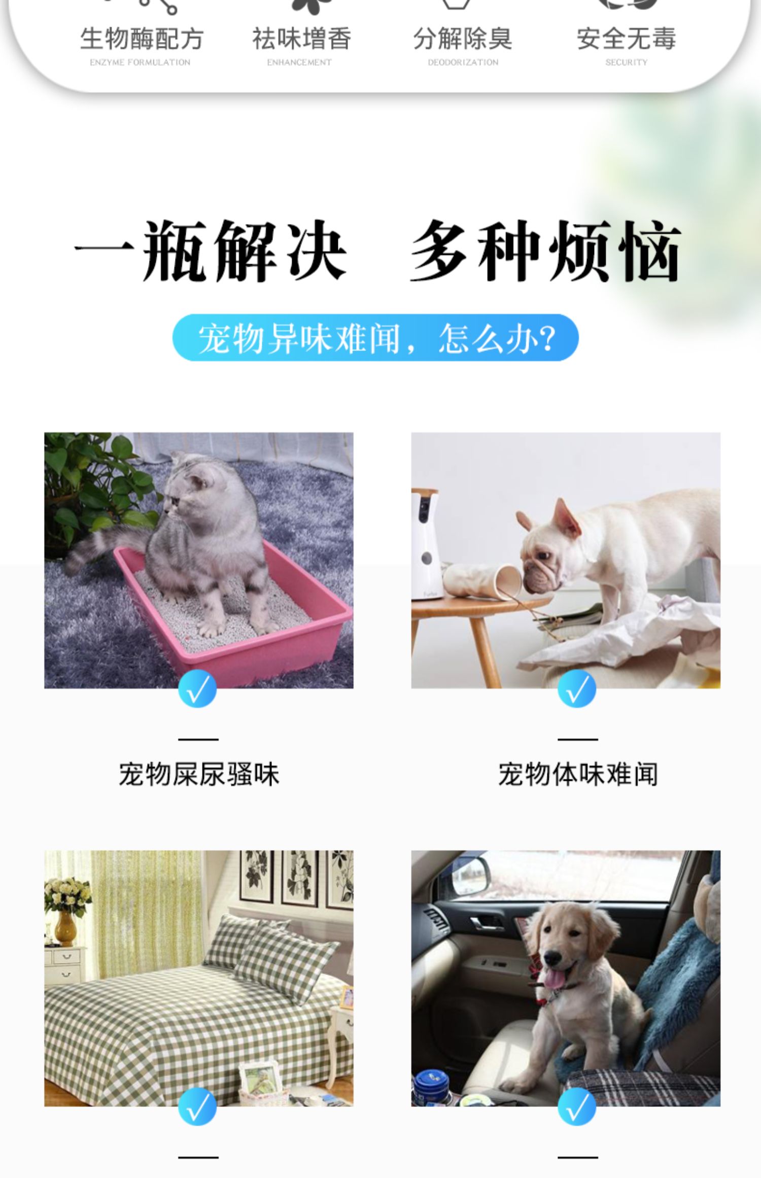 【满2件7.5折】高端宠物祛味剂,萃取天然植物精华,温和无刺激,有效抑制宠物细菌,祛除异味,持久清香,分解臭源非掩盖,有效抑菌防虫,安全不刺激,有效抑菌,气味芳香,防虫抗霉~