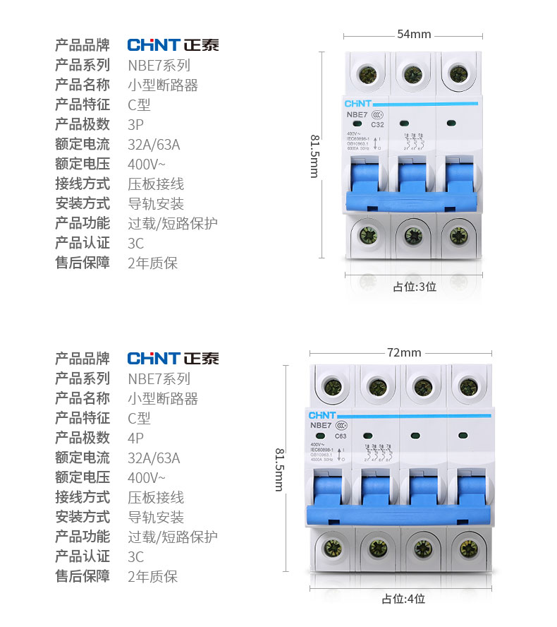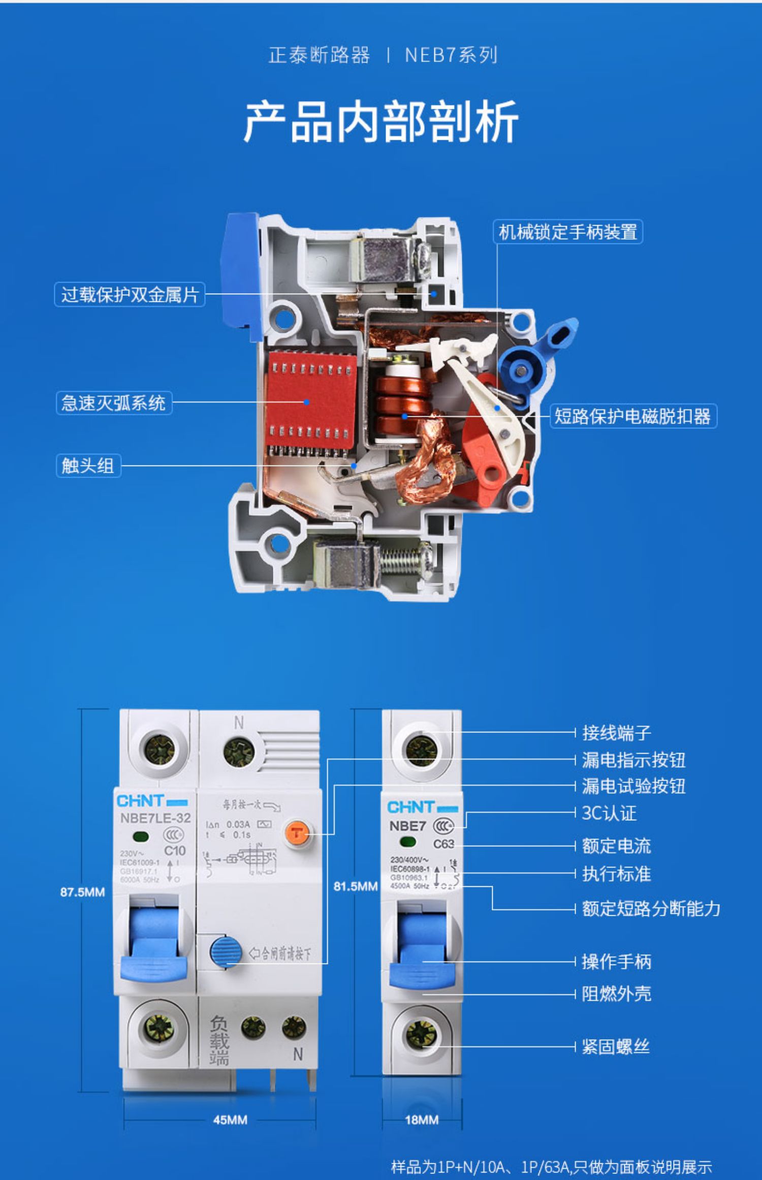 老品牌【正泰】空气开关新款【NBE7】63A,1P,2P,3P。正品包邮。安全可靠,家居,商业,工业通用,电动车,供电。