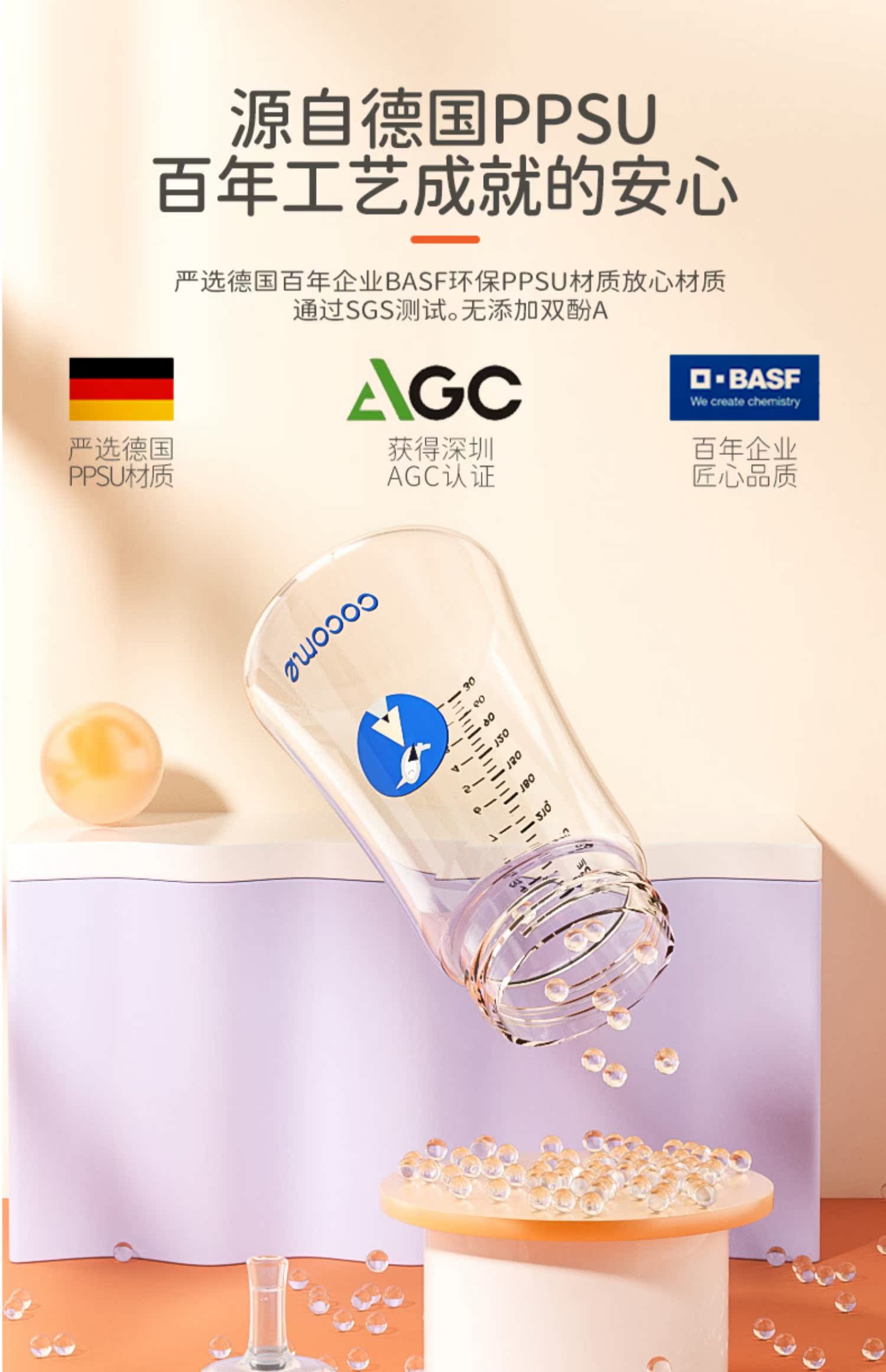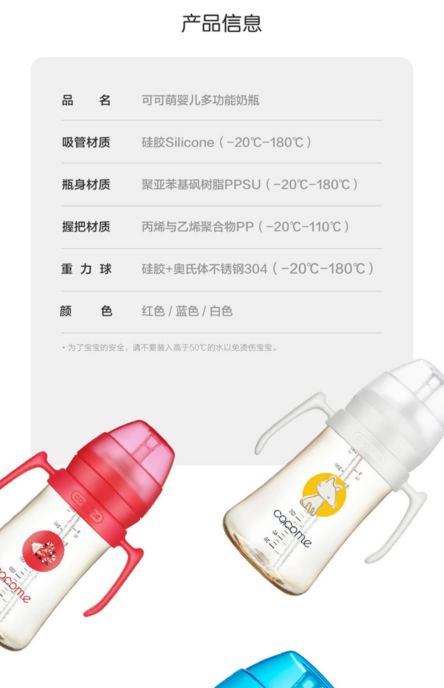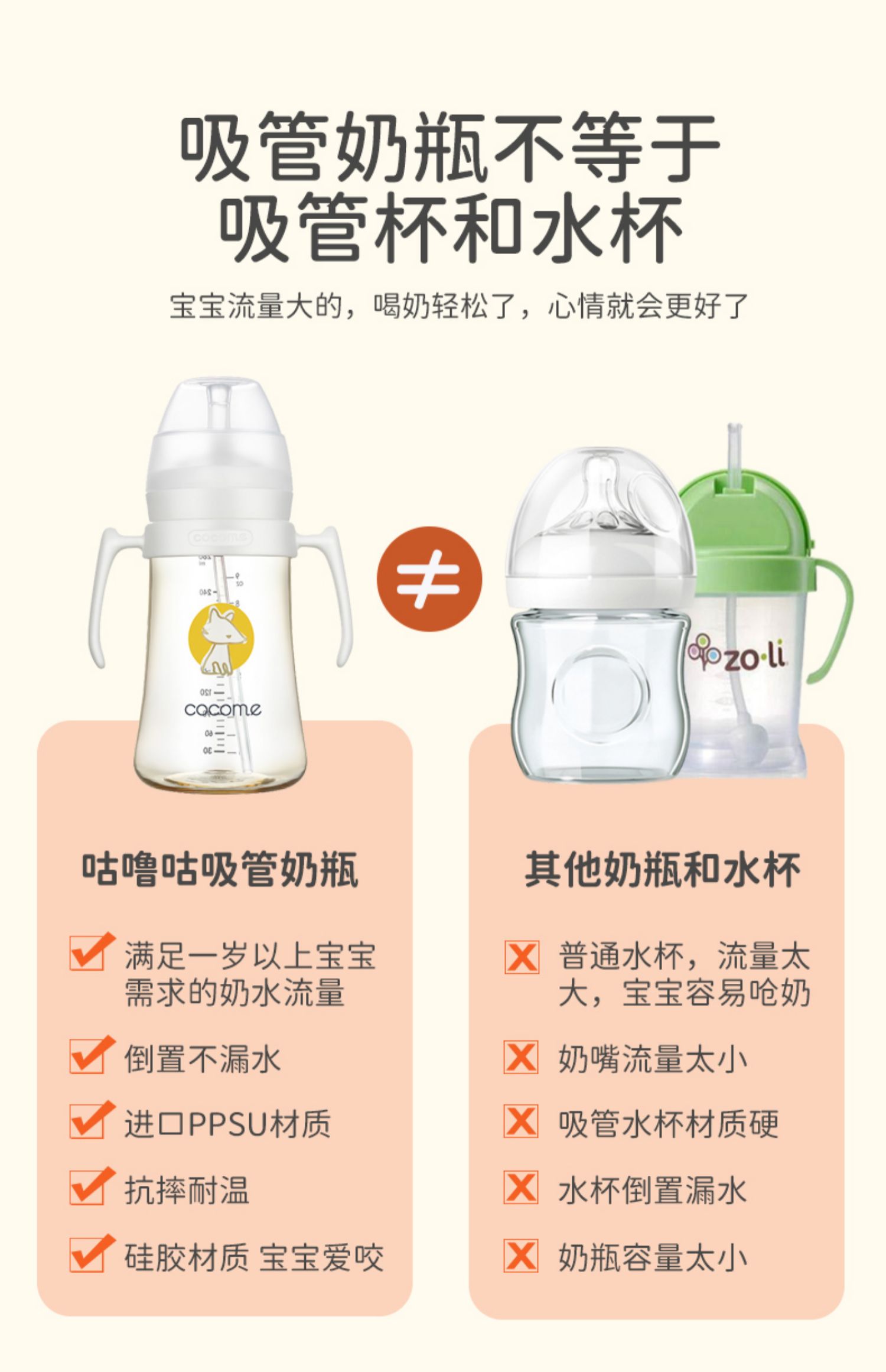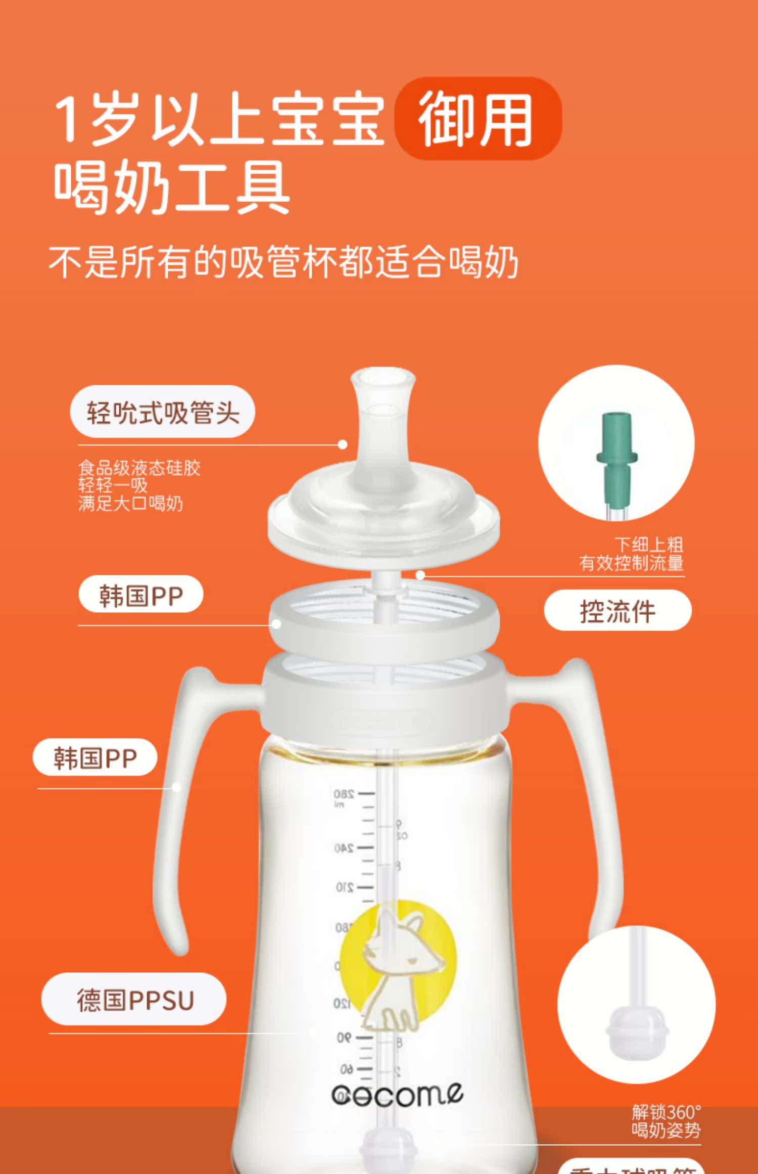 可可萌宽口径吸管学饮婴儿漏奶瓶