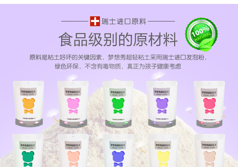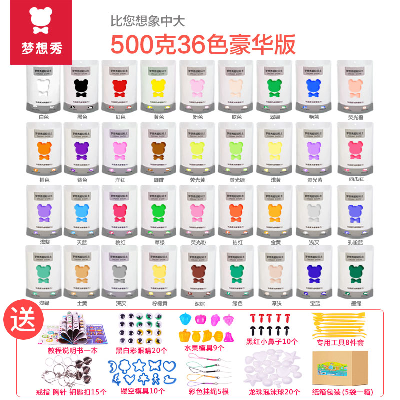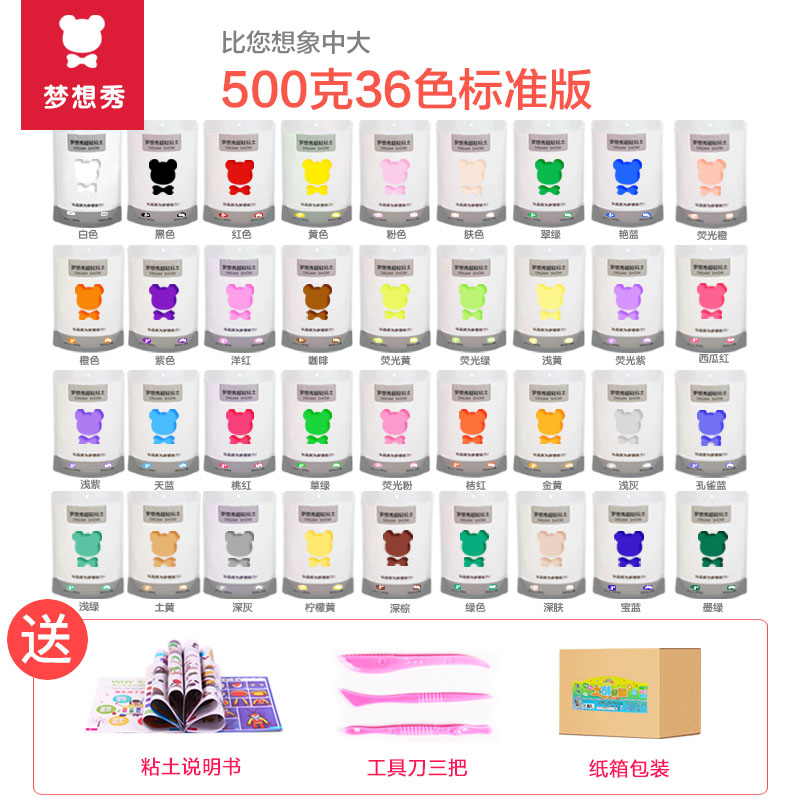 超轻粘土100g卷后只要1.9包邮,儿童专属配方,安全无异味。36种颜色随机发