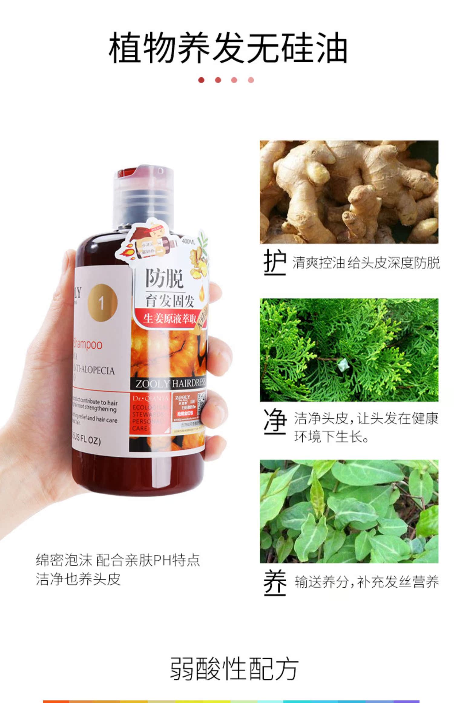 买2送1卓蓝雅无硅油防脱发生姜洗发水