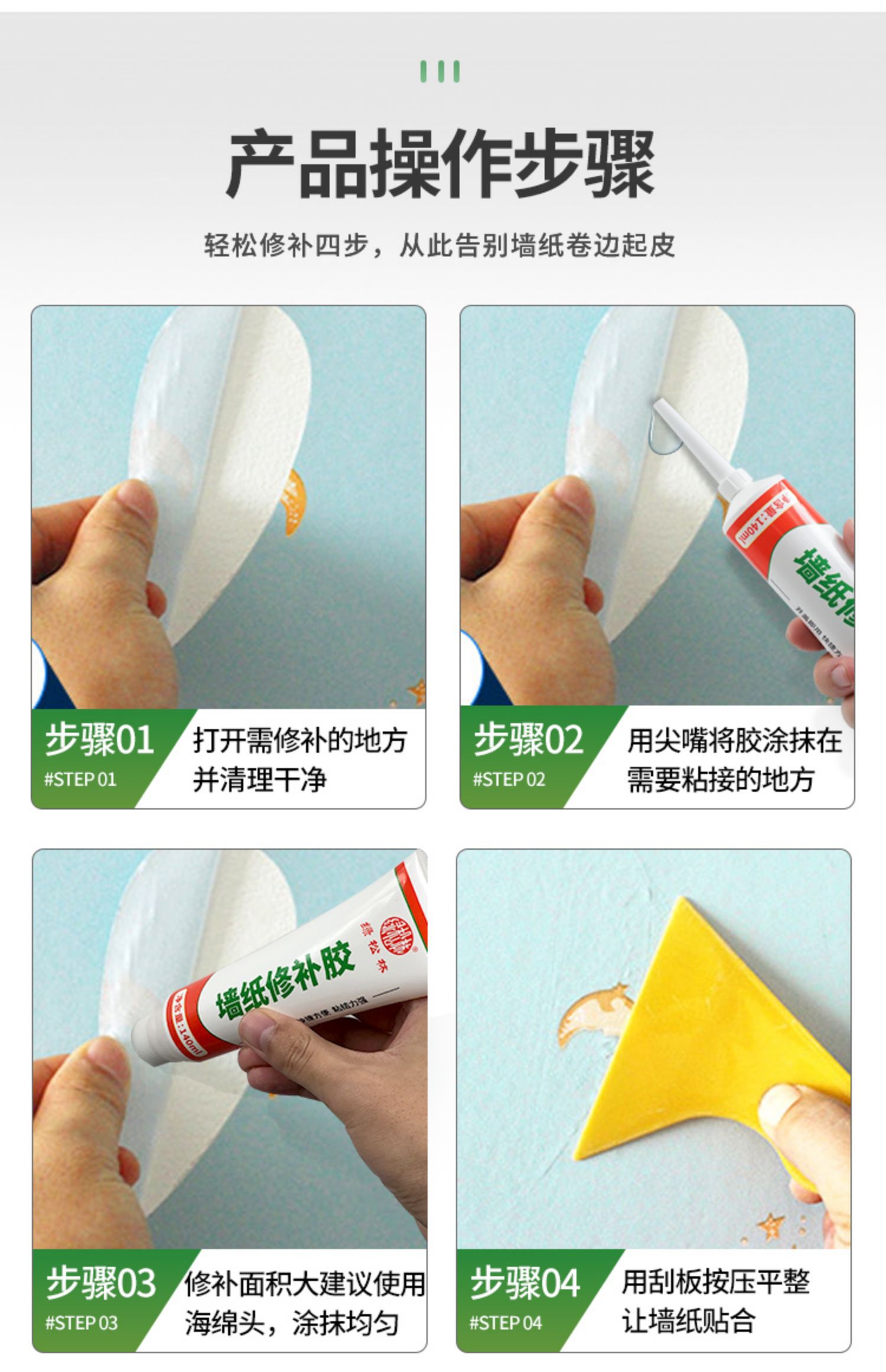 植物胶浆,绿色环保,粘结力优,无色无味,开盖即用,适合多种材质的墙纸~粘什么都可以,奖状,剪纸,也可以当做普通胶水来用,超划算~