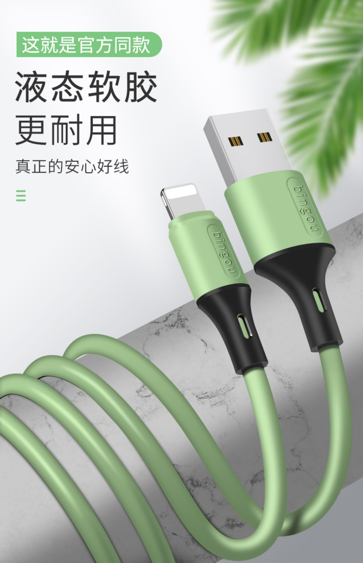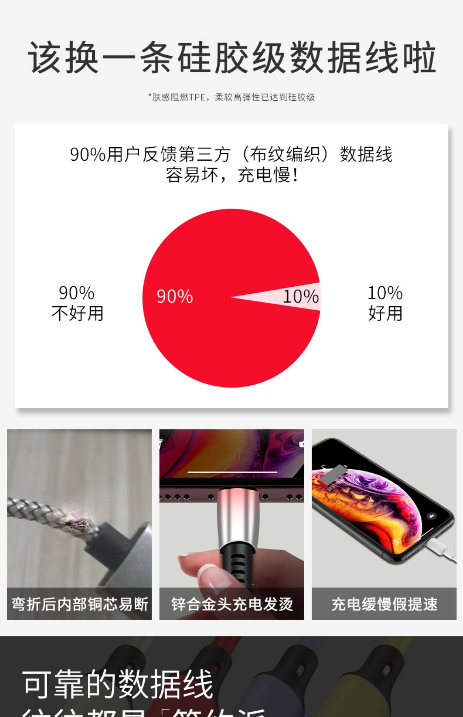 苹果液态软胶升级版数据线,食品级液态软胶,液态软胶、2年换新、支持3A快充,60分钟充满,高弹线材,使用寿命提高6倍,线材柔软,抢到就是赚到~~