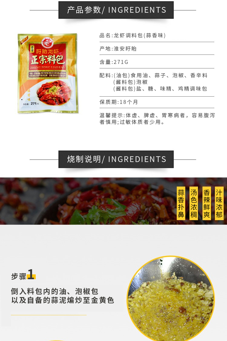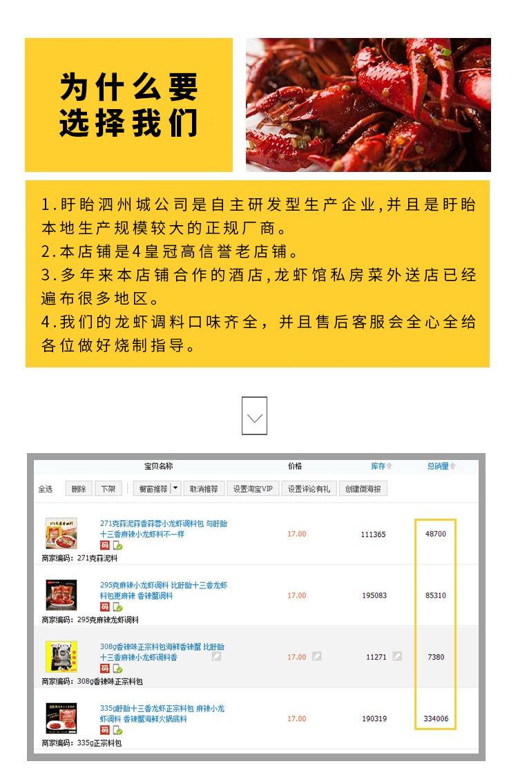 宅家轻松做正宗口味的小龙虾!必囤正宗盱眙十三香小龙虾调料!1包271g调料可做3斤小龙虾~操作简单,味道超正!还可以做虾,螃蟹等美食!