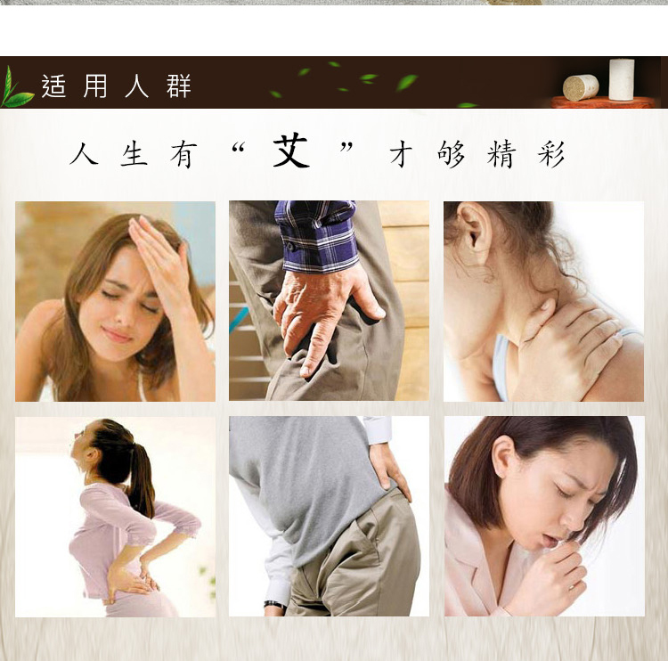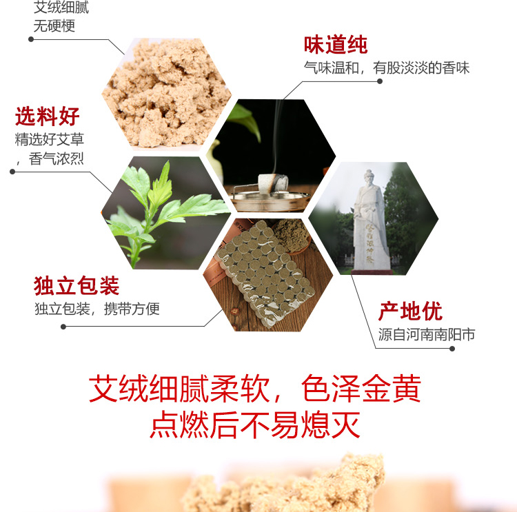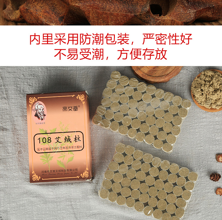 甄选野生陈艾,高比例艾绒,科学提纯古法工艺,艾柱加大,纯正温和,祛湿散寒,通经活络,闲时艾灸一下,颈肩腰腿疼痛立马缓解,浑身都舒服。