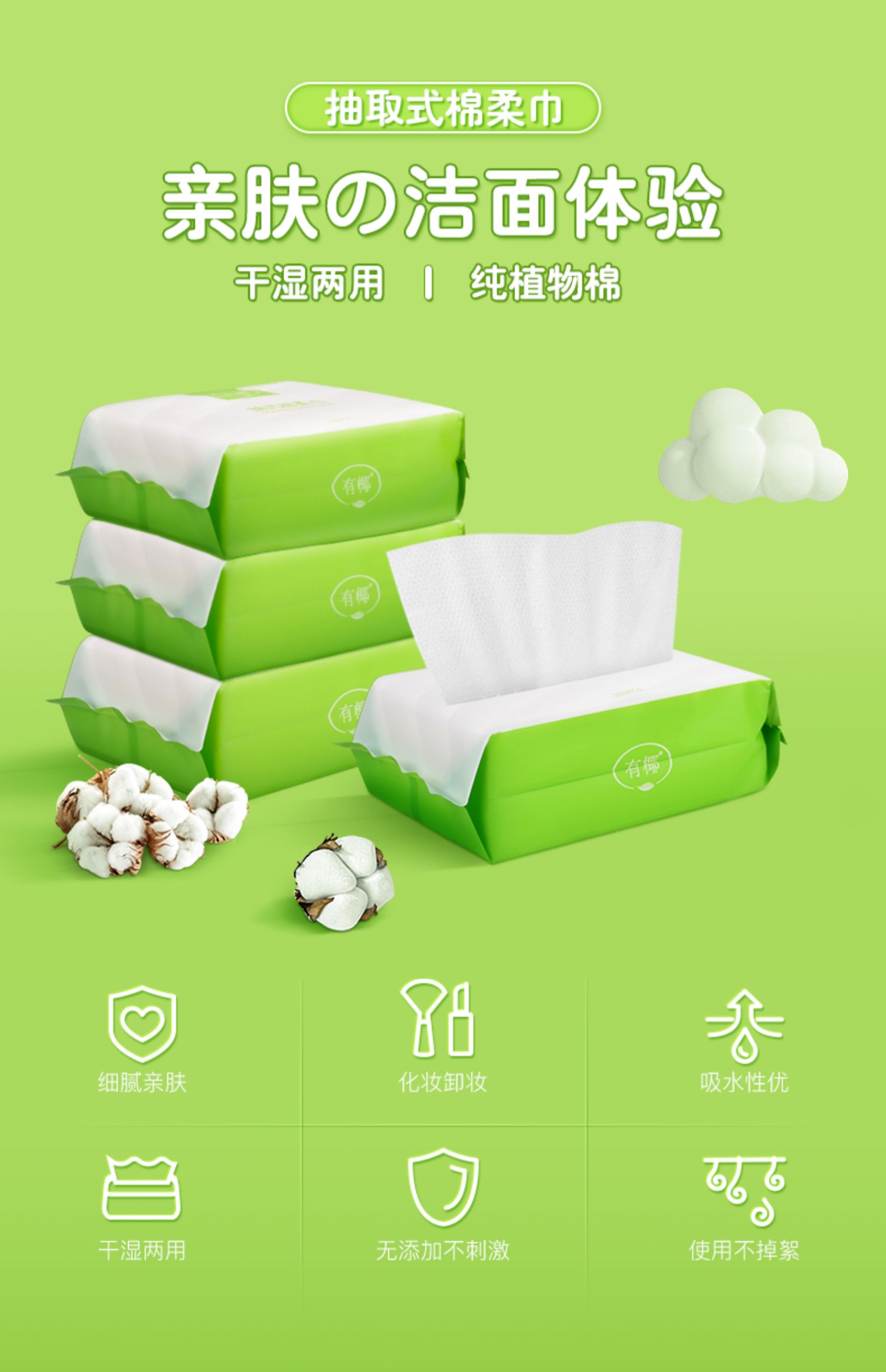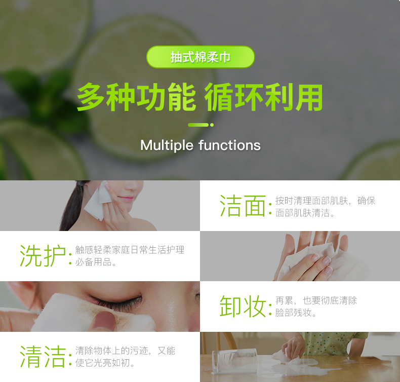 当代流行的洗脸方式!自然植物纤维!天然好棉,干湿两用,不掉絮,无漂白剂,无荧光剂,亲肤柔软;哪里需要擦哪里!