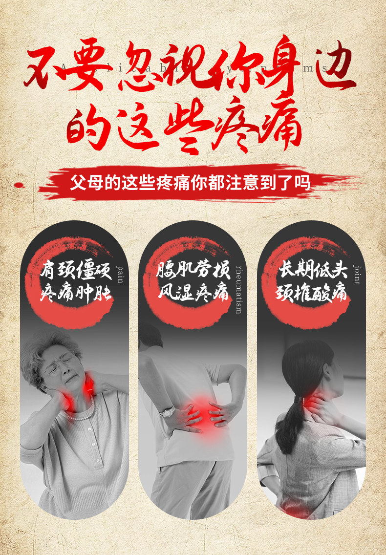 颈椎病、肩周炎、风湿病、腰间盘突出、关节炎的克星,哪里痛贴哪里,效果不夸张,上班族,中老年都适合,家中常备品~