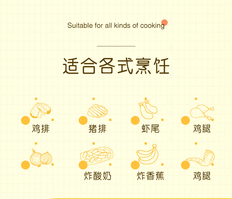 香酥脆软,可口鲜美,耐炸吸油少,久炸不黑不掉,营养丰富,香酥脆软,老少皆宜,适合各种烧烤腌制,香味浓郁,爽爆味蕾。懒人妙用,居家必备。