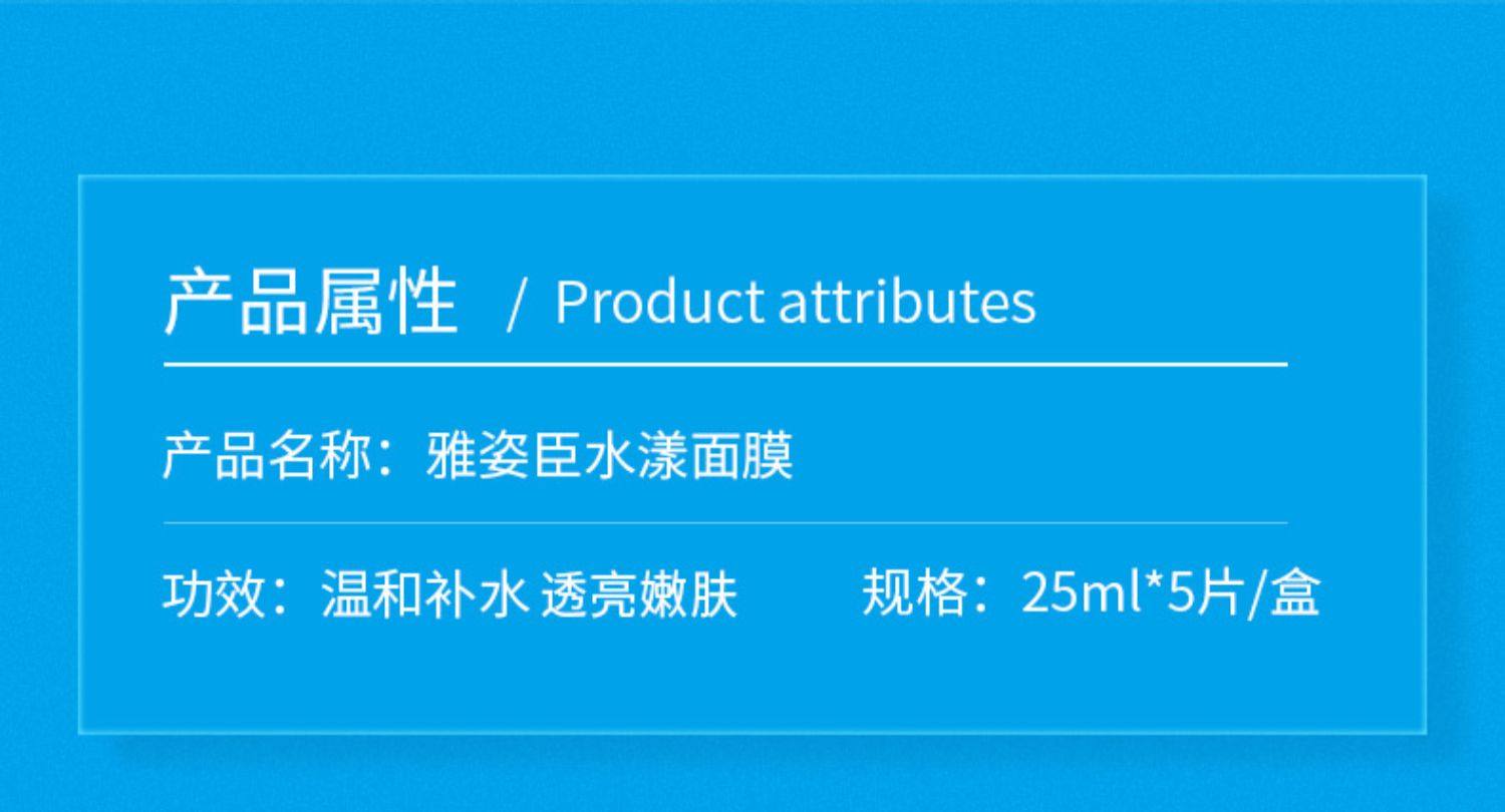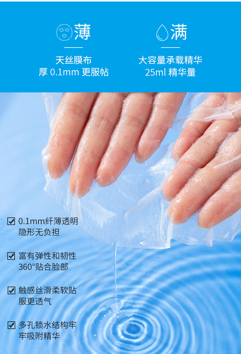 【拍第二选项拍两件】雅姿臣补水滋润,紧急补充肌肤水分,含有6种植物提取物,膜布是0.1mm的超薄天丝,足足裹了25ml的精华,深层修护,修护肌肤屏障!【赠运费险】