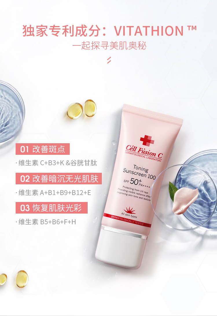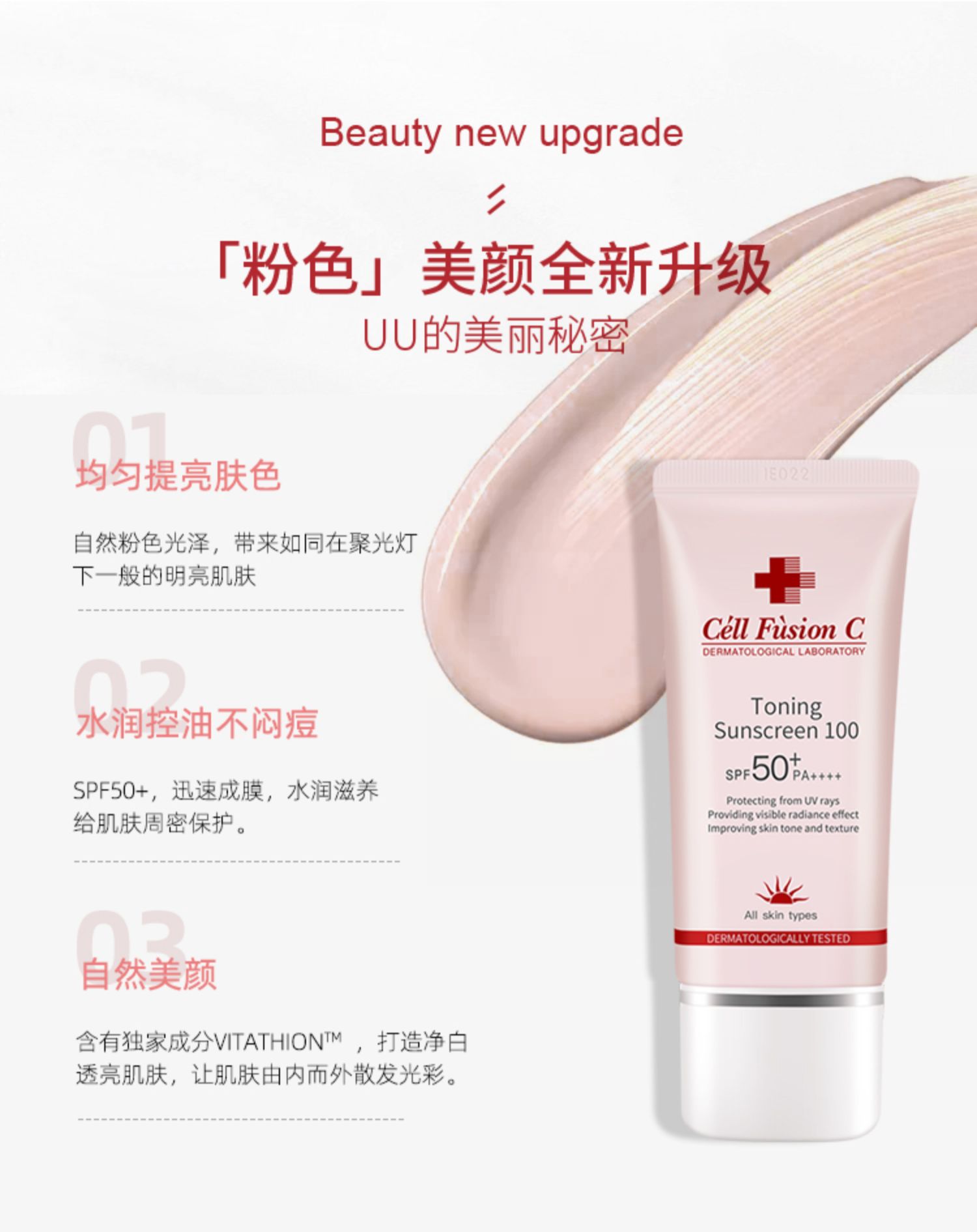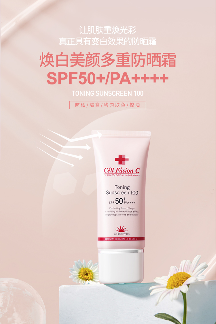 SPF50+PA+++焕白美颜多效防晒霜,水润滋养,迅速成膜,锁油配方,高湿高温环境也无惧出油脱妆!360°周密防护,有效防外界刺激、晒伤、粉尘!【过敏包退,赠运费险】