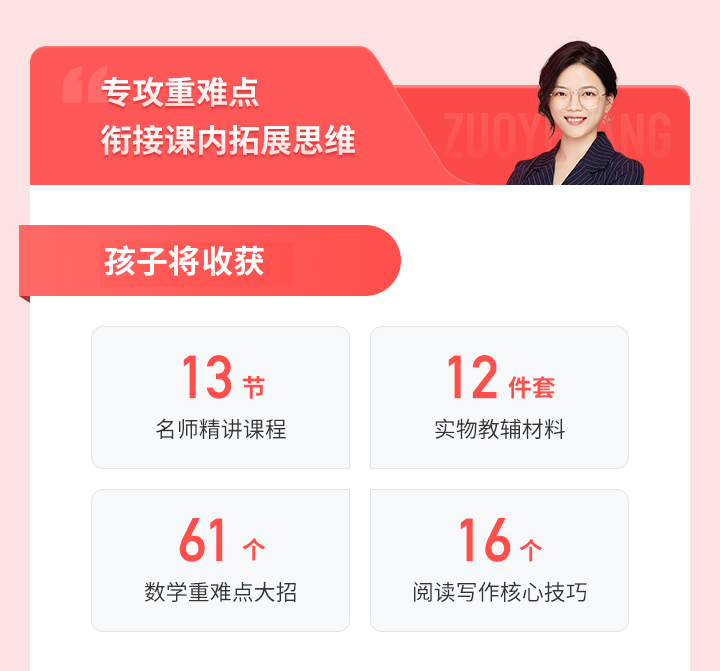 【小学-高中网课】作业帮直播课9元语数双科,13节课紧跟提纲,1对1课后答题,双师教学为每个孩子学习负责,突破重点,衔接课内思维,孩子收获多多,送教辅礼盒12件。