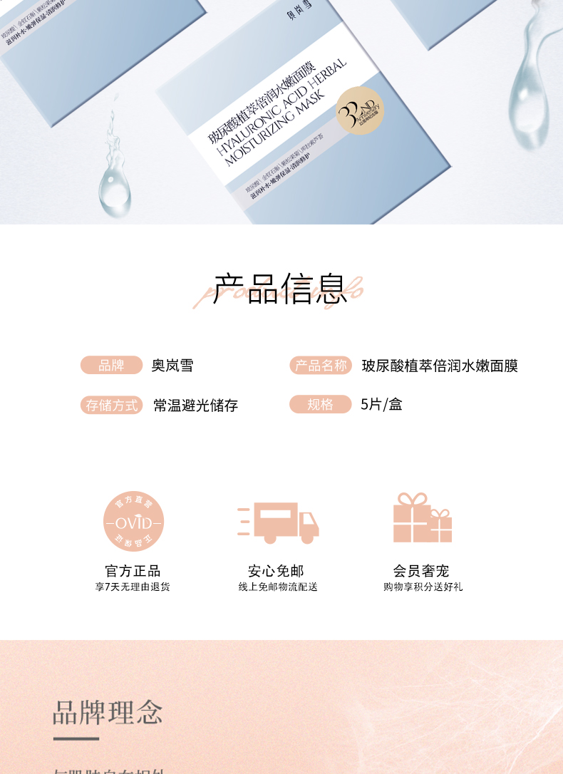 ovid /奥岚雪玻尿酸极润补水女面膜