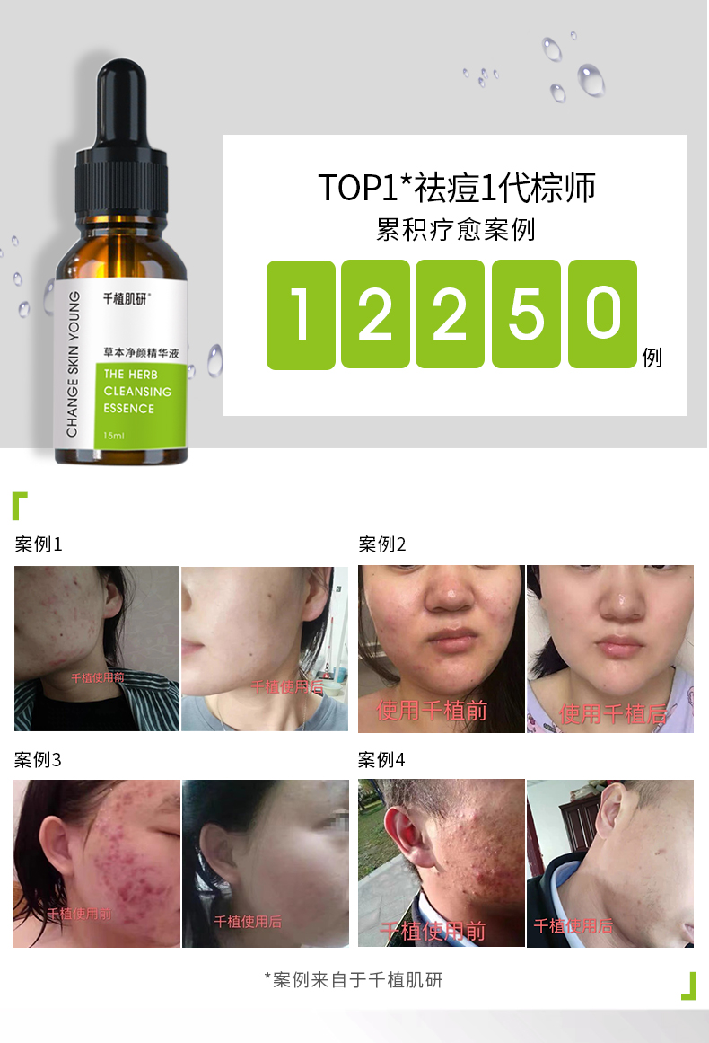 祛痘“小棕瓶’每次三滴解决痘痘问题,实力祛痘不同痘肌的共同选择精准解决每一种肌肤需求,产品均受国家特药蓝局备