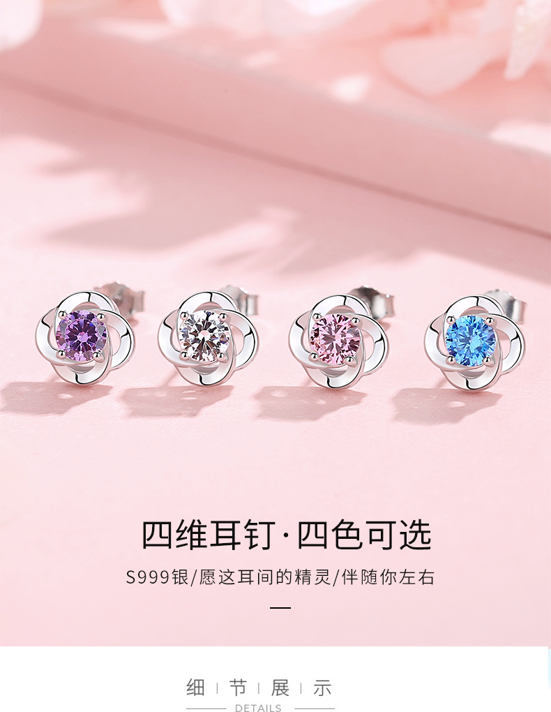 【多款可选】甄选s999纯银材质,镀白金工艺,镶嵌锆石,爱的信物,用心设计,倾尽美好,爱她就送她四叶草系列,满足她的少女心~
