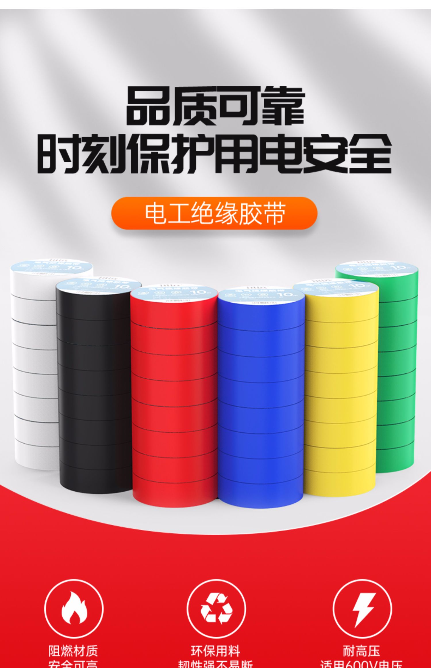 6米绝缘胶布只要1.2元!高品质pvc材质,超耐高温,弹性好,强力阻燃保护线路,防水性强,不易脱落!家庭必备的小物品,屯着绝对用得着