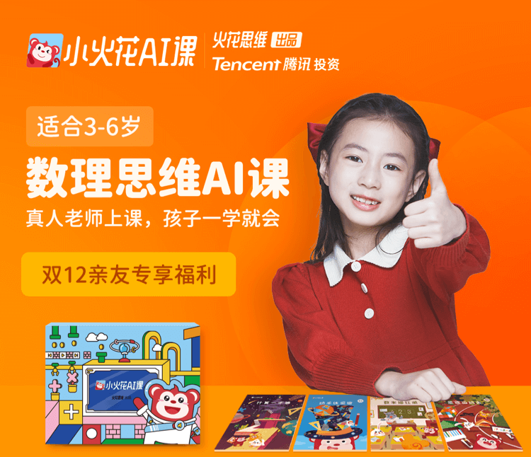 小火花AI课,8节数理思维课加赠价值796的幼小衔接课程。赠送实物教具。智能互动,结合大数据,因材施教,提高孩子的数理思维。