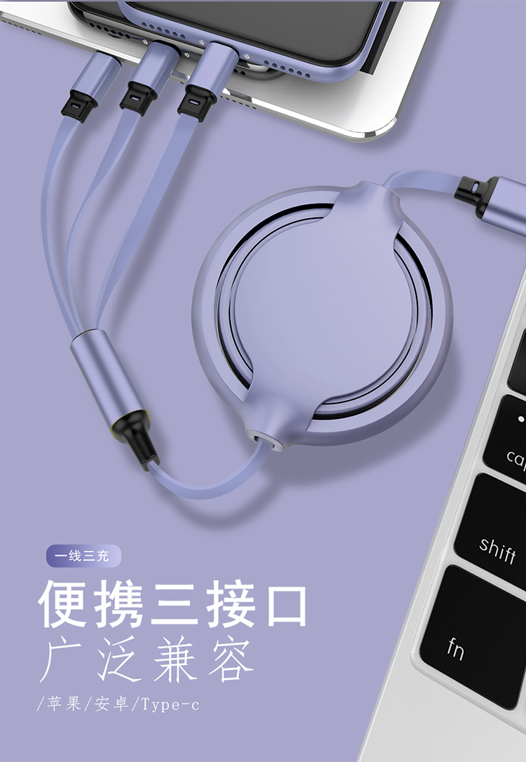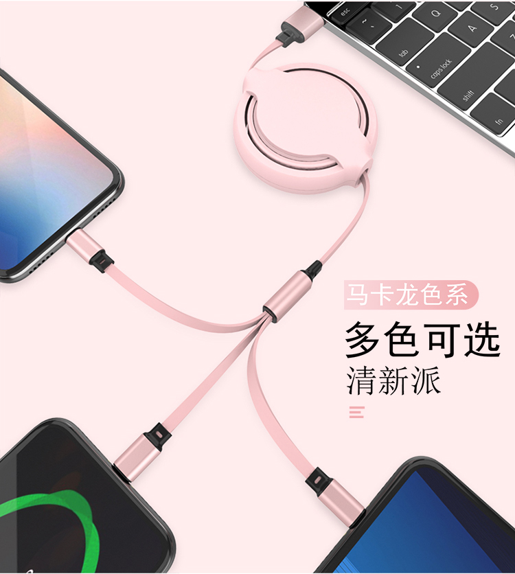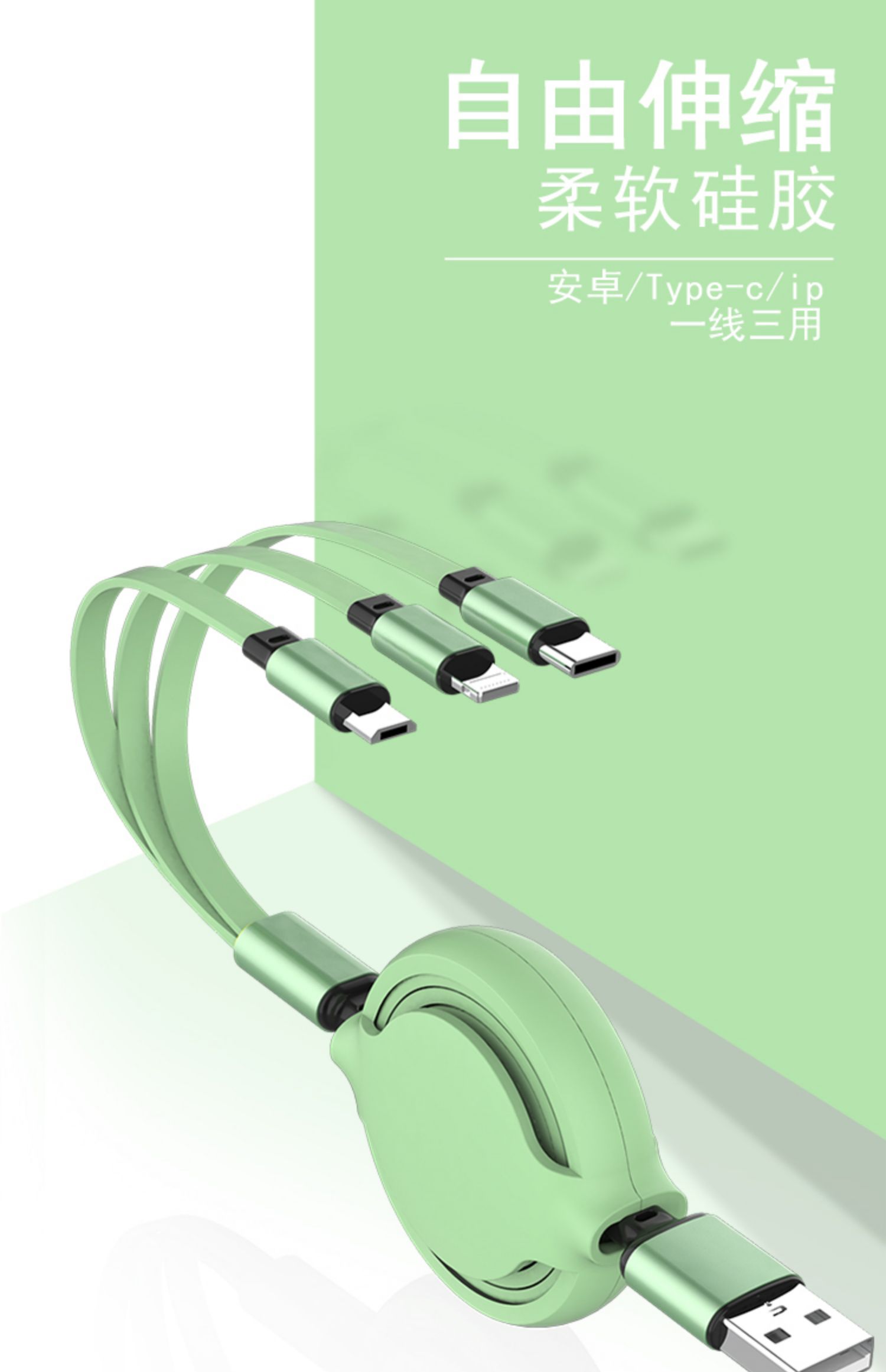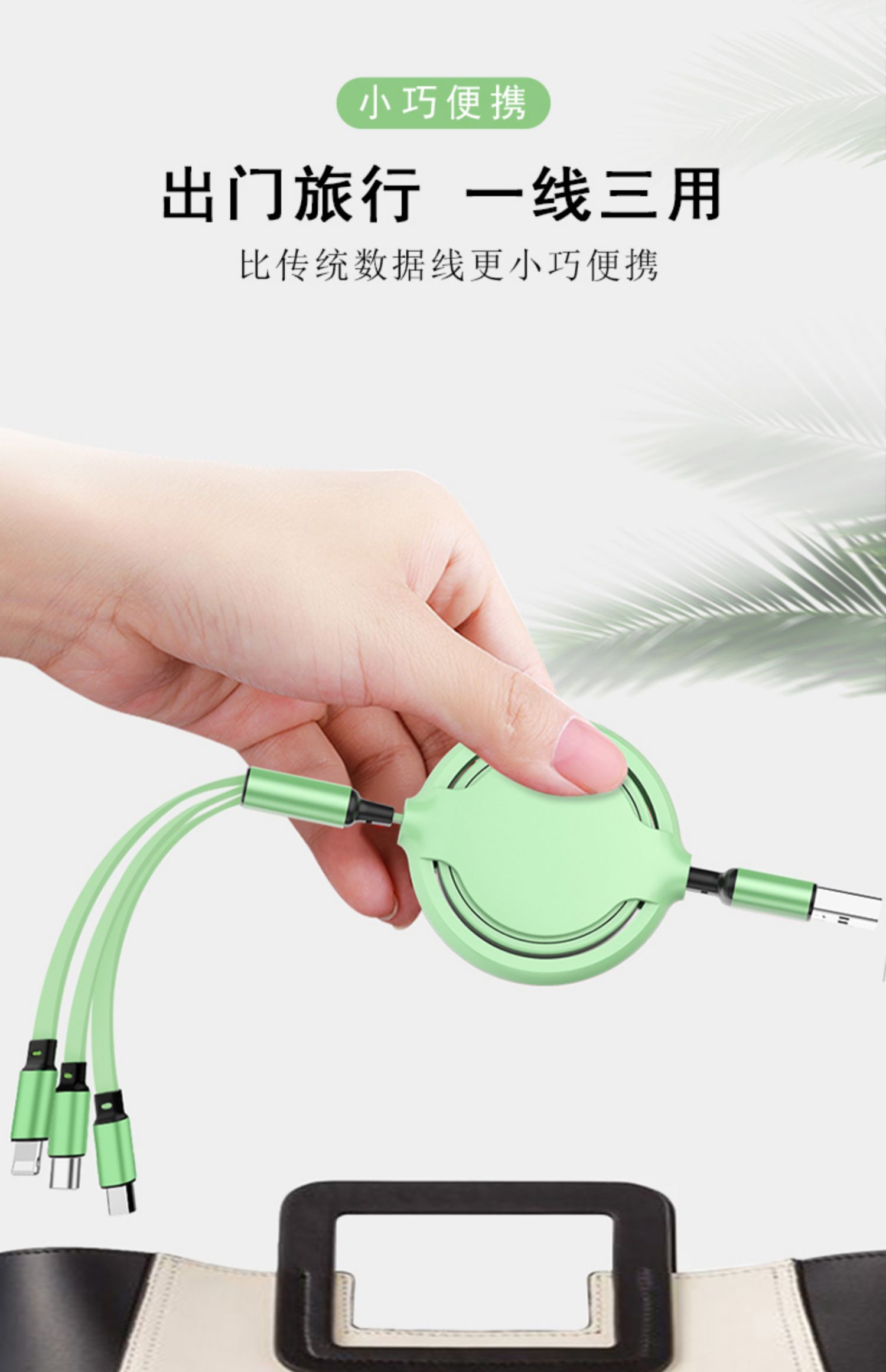 【便携伸缩款】3A加粗版线芯加粗【超长1M】全铜芯设计,充电提速40%,质保2年,优质合金外壳,多头充电线,解决不同接口的需求!超级方便实用~
