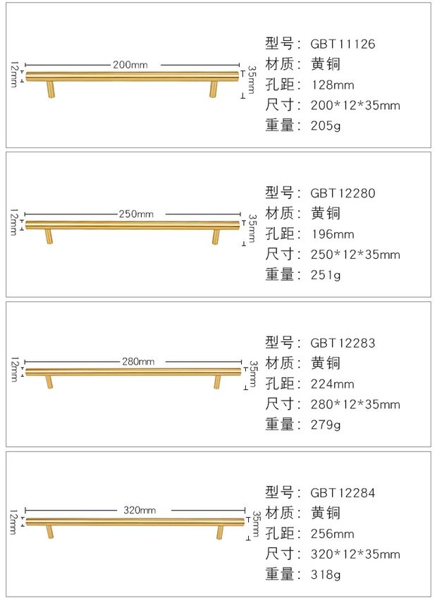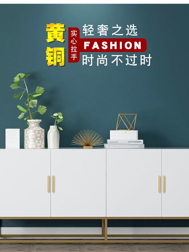 纯黄铜北欧衣橱柜门抽屉拉门把手