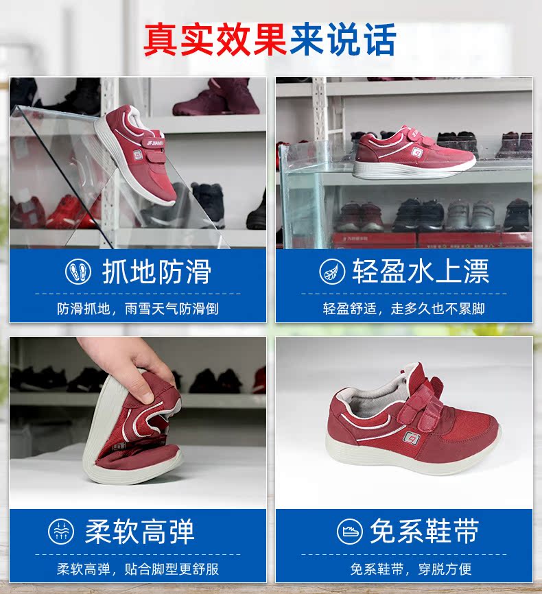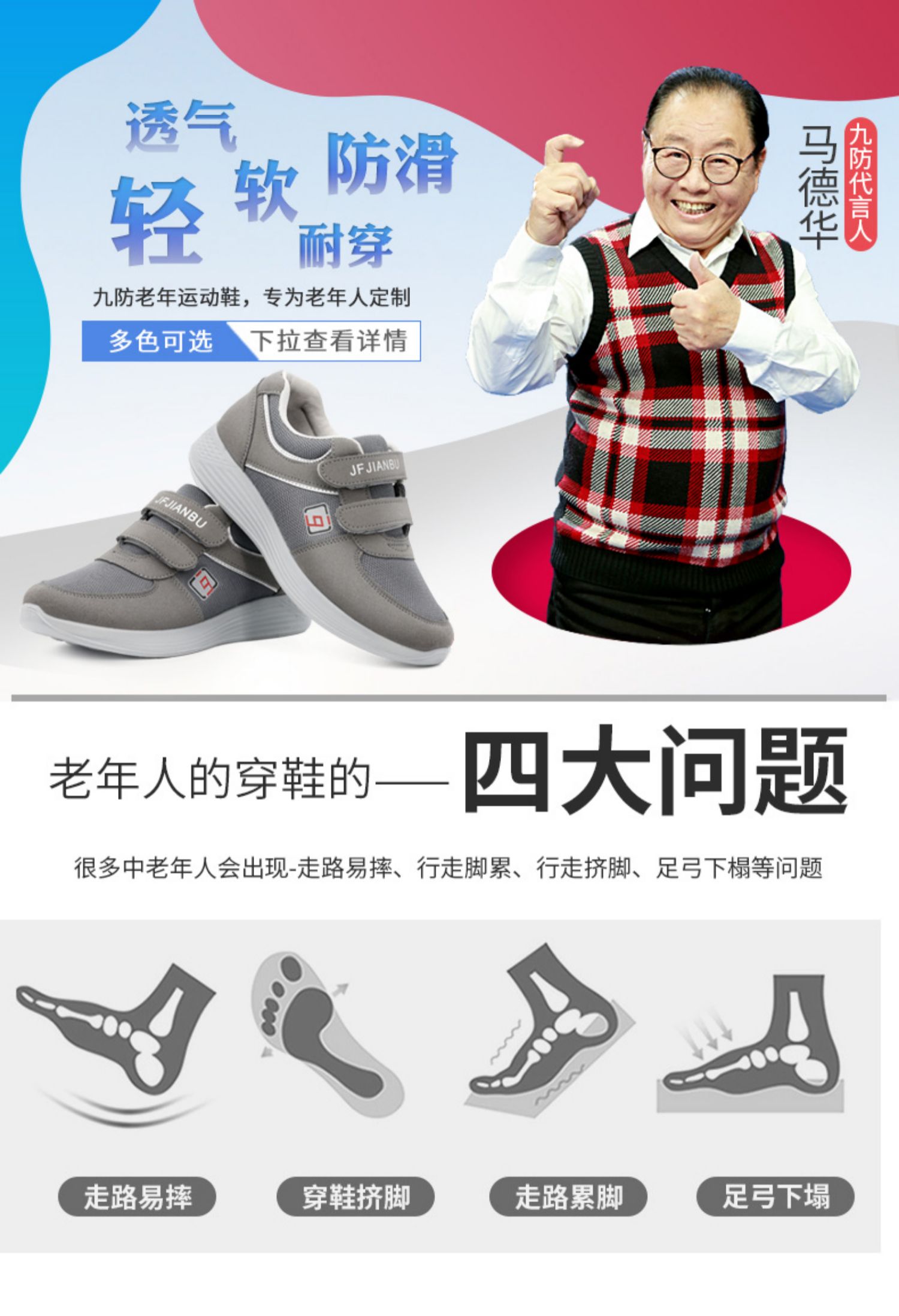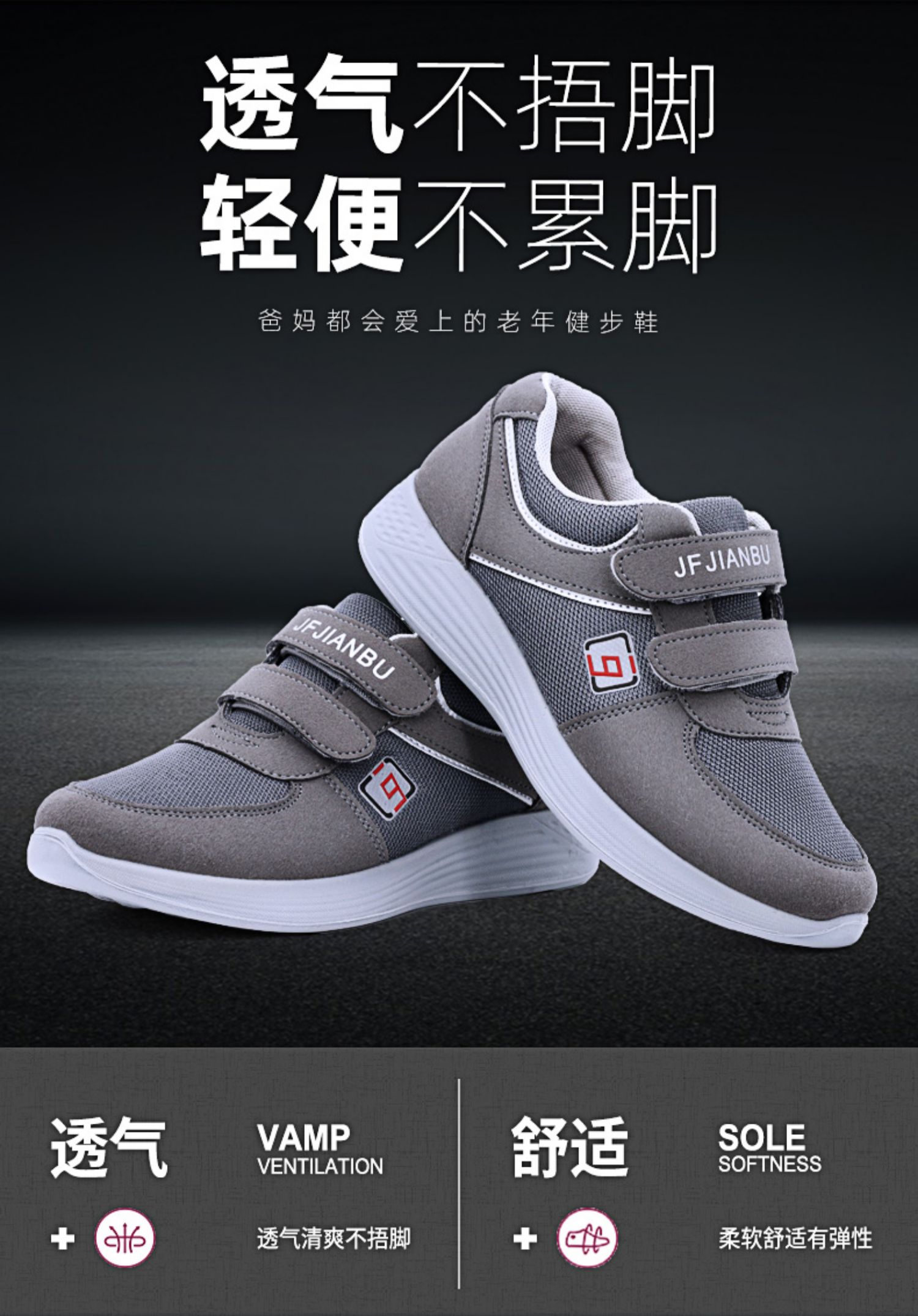 老人健步鞋,为中老年设计的运动休闲鞋,舒适出行,软底透气不捂脚,双层复合材质鞋底防滑安全,便捷魔术贴设计,舒适又方便,多色可选。