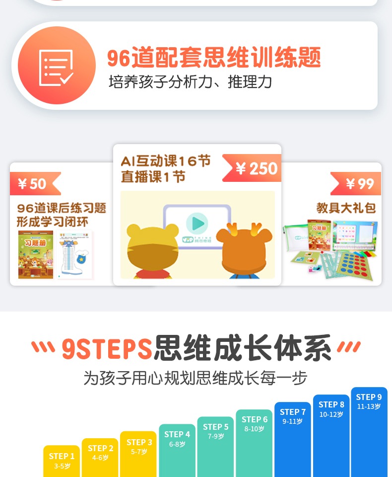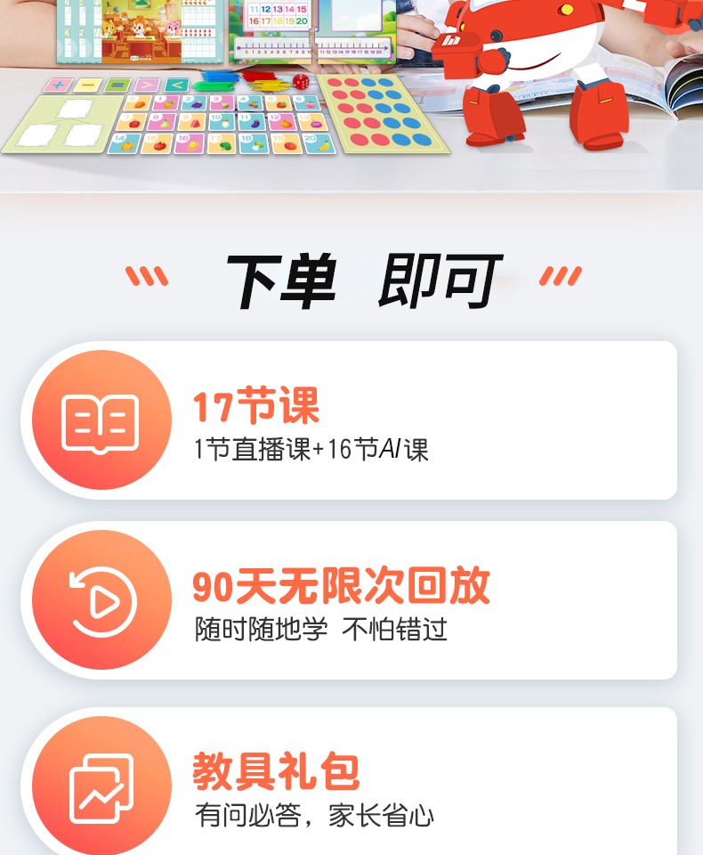 直播课+AI课+包邮送计算能手大礼包!仅9元!家争取了500份体验福利!实物赠品礼包包括数感升级训练册、辅助题目卡、数字描红本、数学符号卡等,在领券购买仅需9元,想让孩子暑假弯道超车可以购买试一下啦!