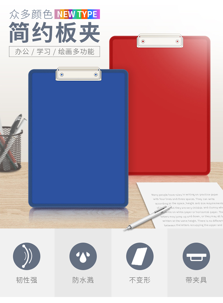 【带夹款】背部带挂钩,使用方便,pvc材质文件夹板硬垫板,防刮伤,编织包边,不割手,防磕碰,防水溅,不变形不开边,十五种颜色随机发。【天猫店铺,品质保障】