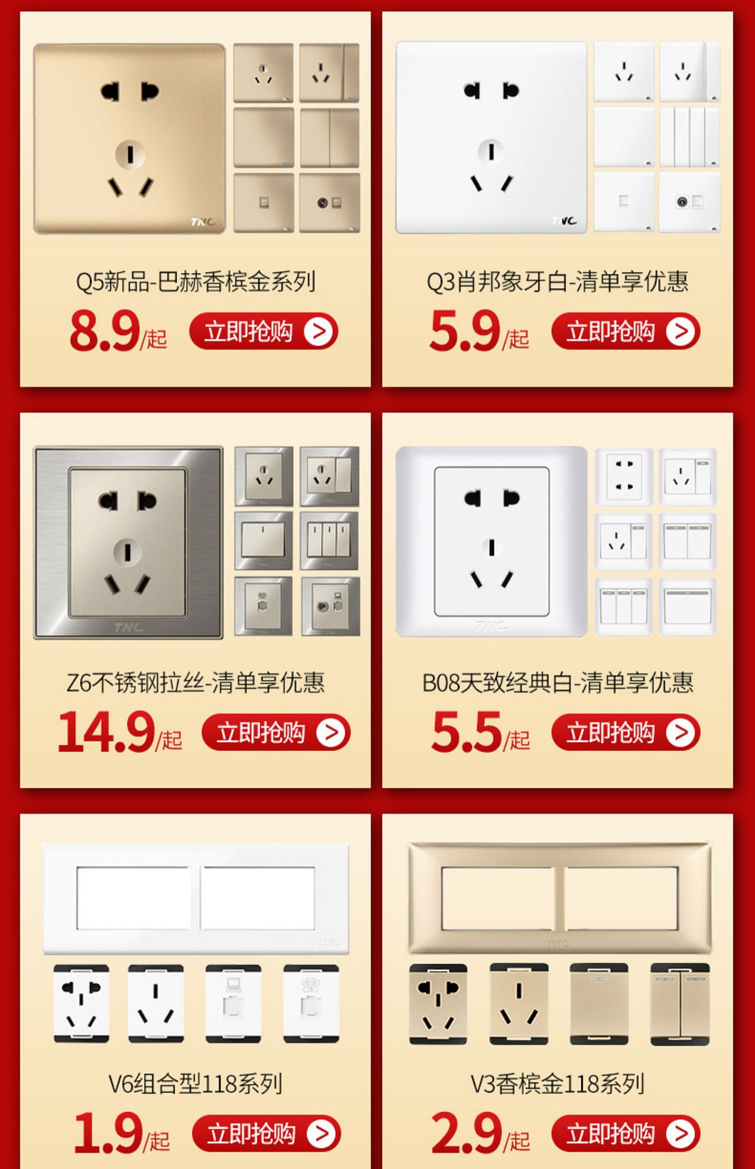 TNC开关插座,防雷防漏电,高温阻燃,多重保护,用电更安心,一开三级插,墙面简洁,轻松解决插座不够!