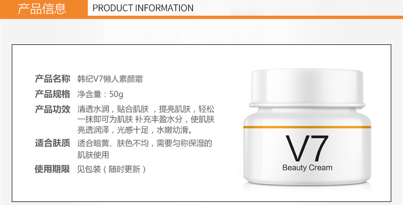 【韩纪V7懒人素颜霜】提亮肤色补水面霜,轻薄透气,自然透亮,裸妆效果,水润光感,清爽好推开,夏天也不油腻,含丰富的补水成分,轻松打造自然裸妆