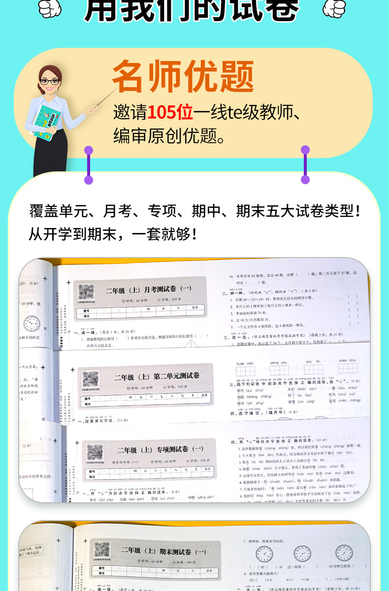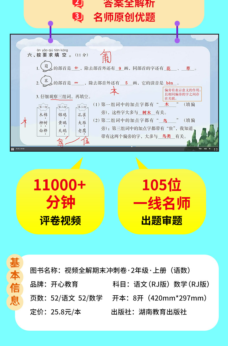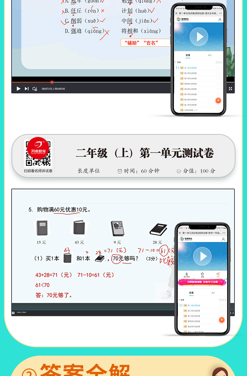 【人教版】二年级上册试卷,视频全解冲刺卷语文数学,2年级单元测试卷,配套视频全解,有助于孩子轻松理解~