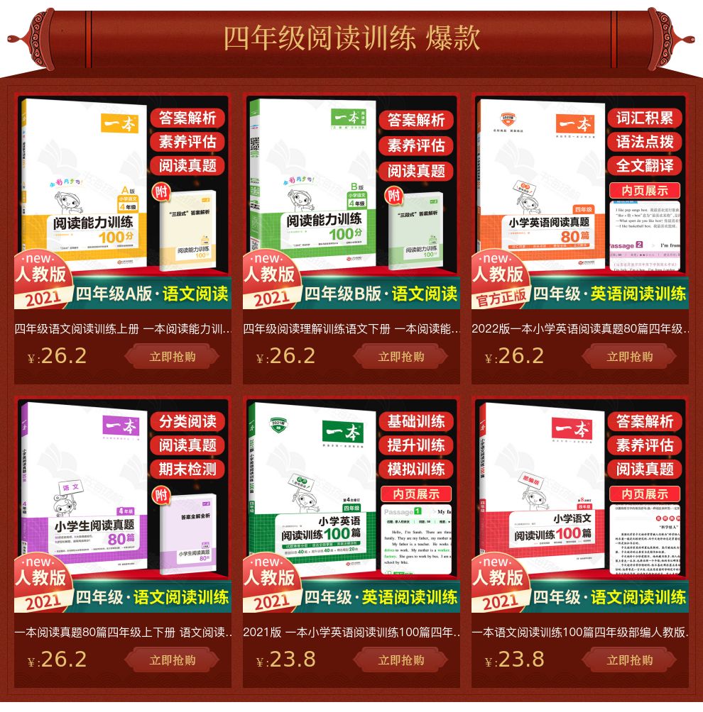 2021版一本小学阅读理解专项训练100篇,四年级英语阅读理解训练题,同步教材,发散思维,快快屯起来吧