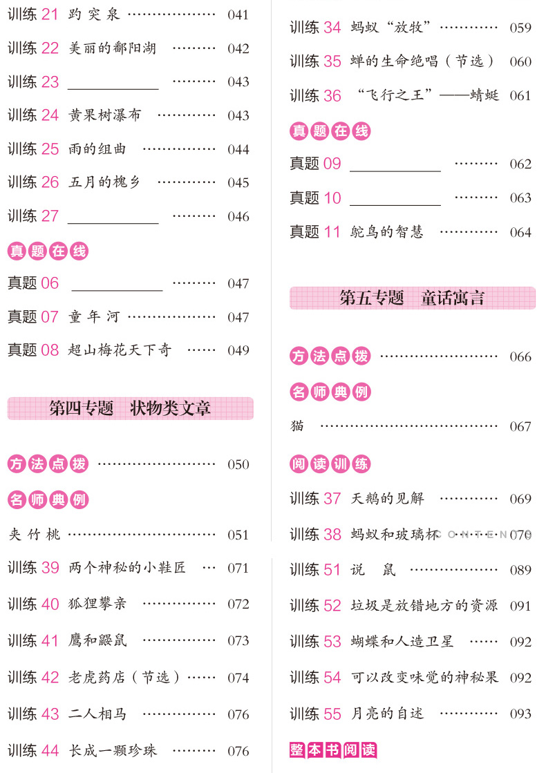 小学四年级语文阅读训练100篇