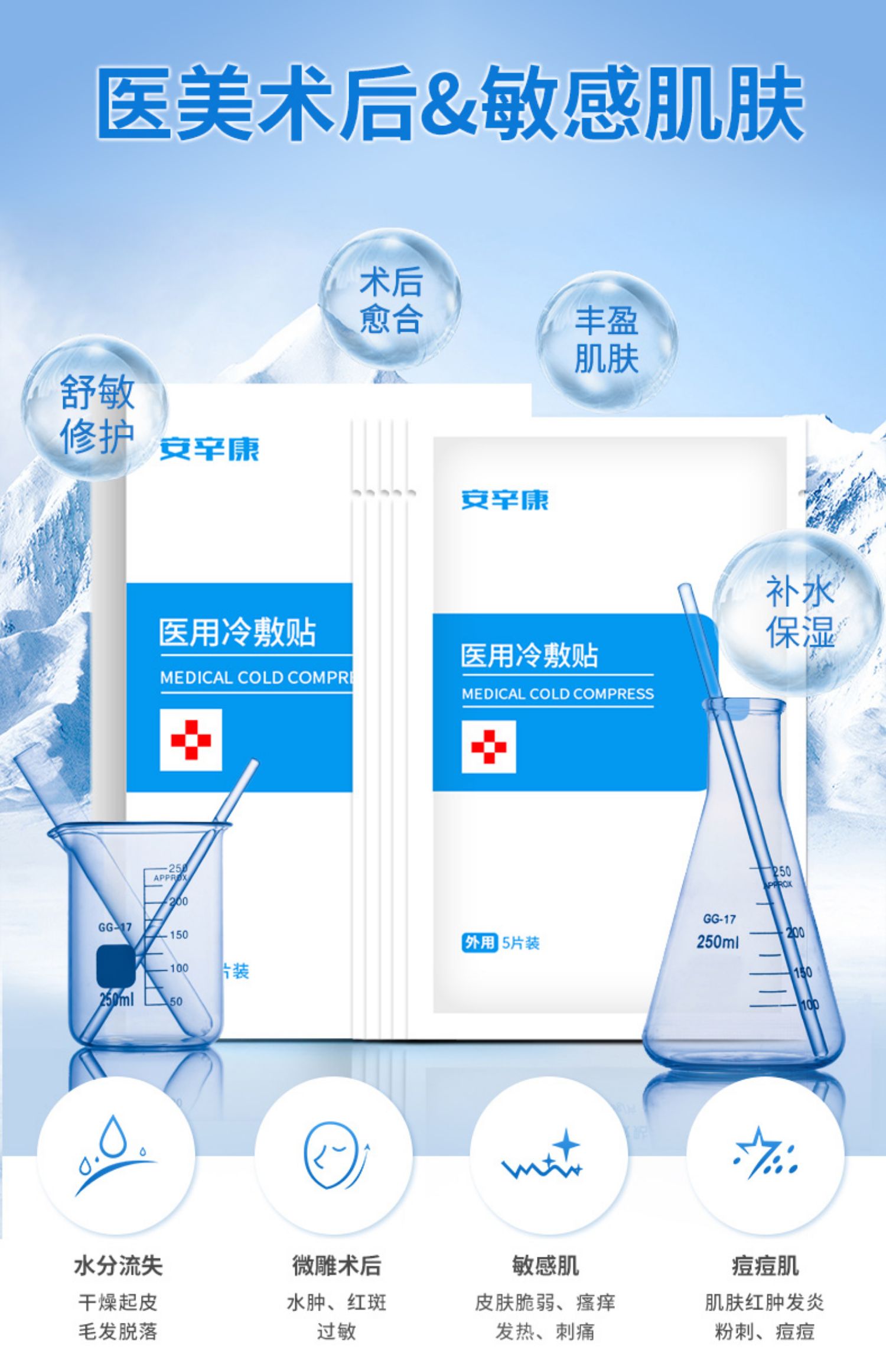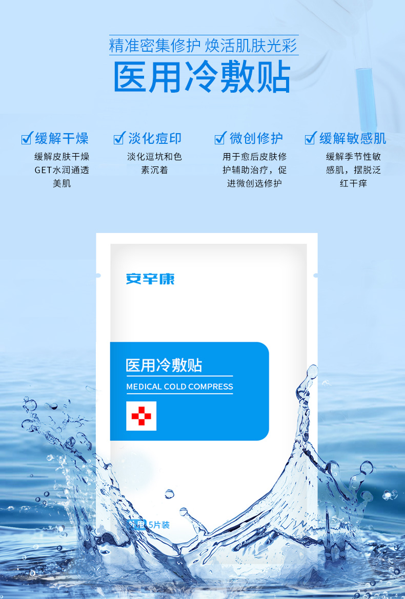 【1盒5片装】医美术后,敏感肌肤专属!药监局医疗认证,物理冷敷,促进创面愈合与皮肤修复,锁水保湿,淡化痘印,痘痘肌、敏感肌必备的哟!【到手可试用1片!不满意全额退款!】