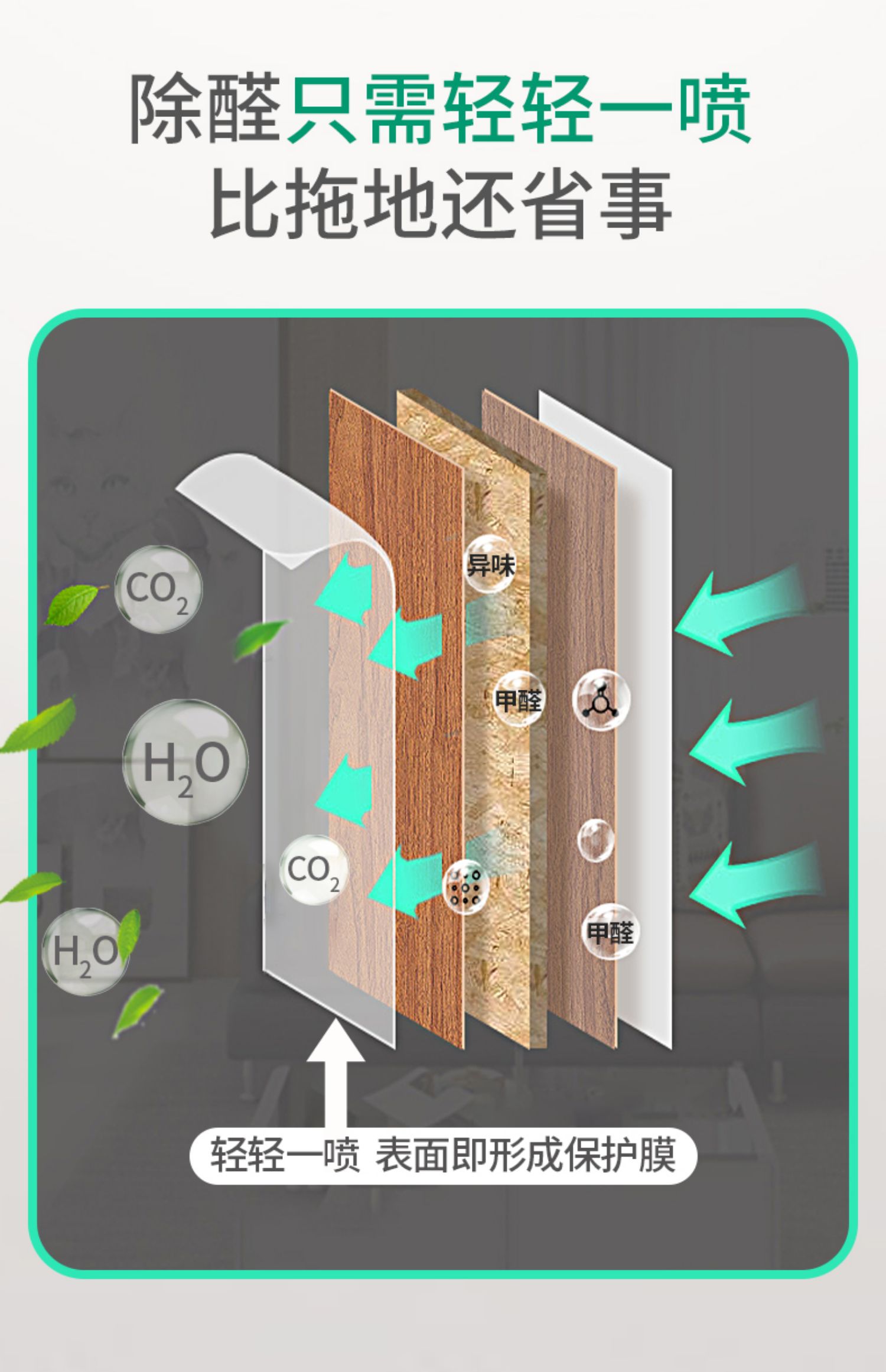 【买二送一】强力型去除甲醛,新房家具新车喷雾神器,治理室内车内污染,分解甲醛,除醛率高达99%,高性能高效率,无毒午刺激,新型融合光触媒,加强吸附分解效果好。