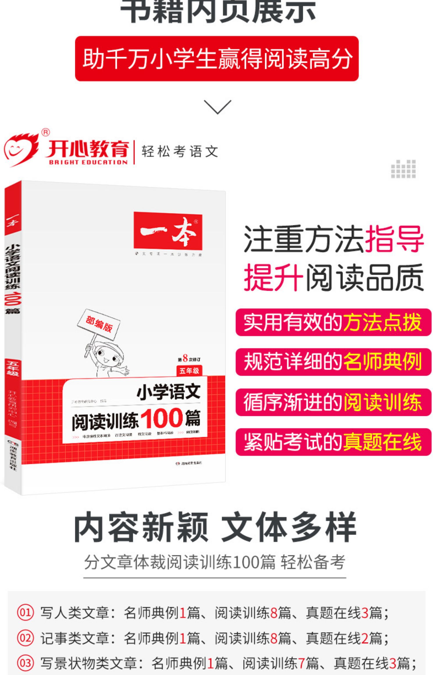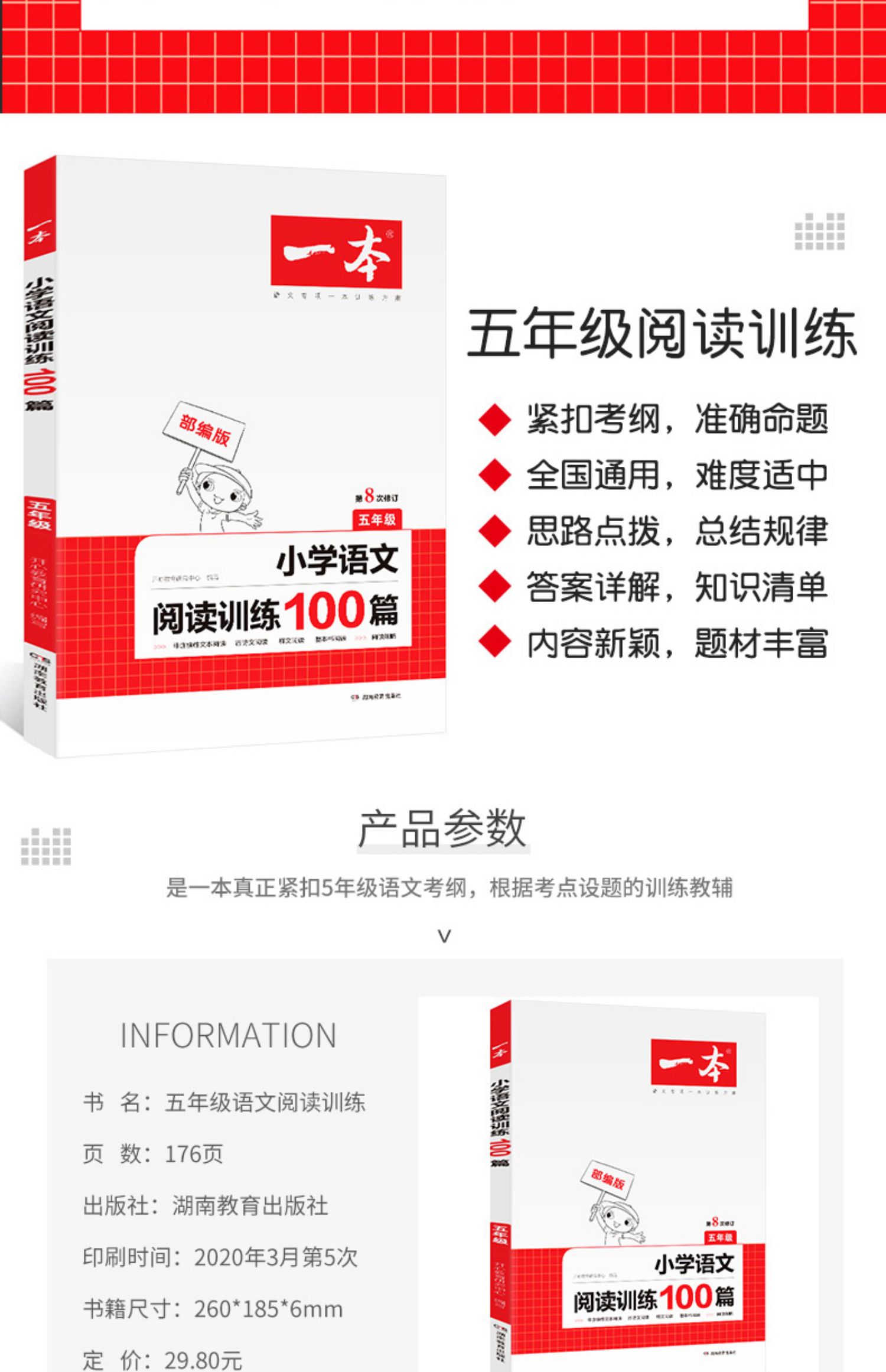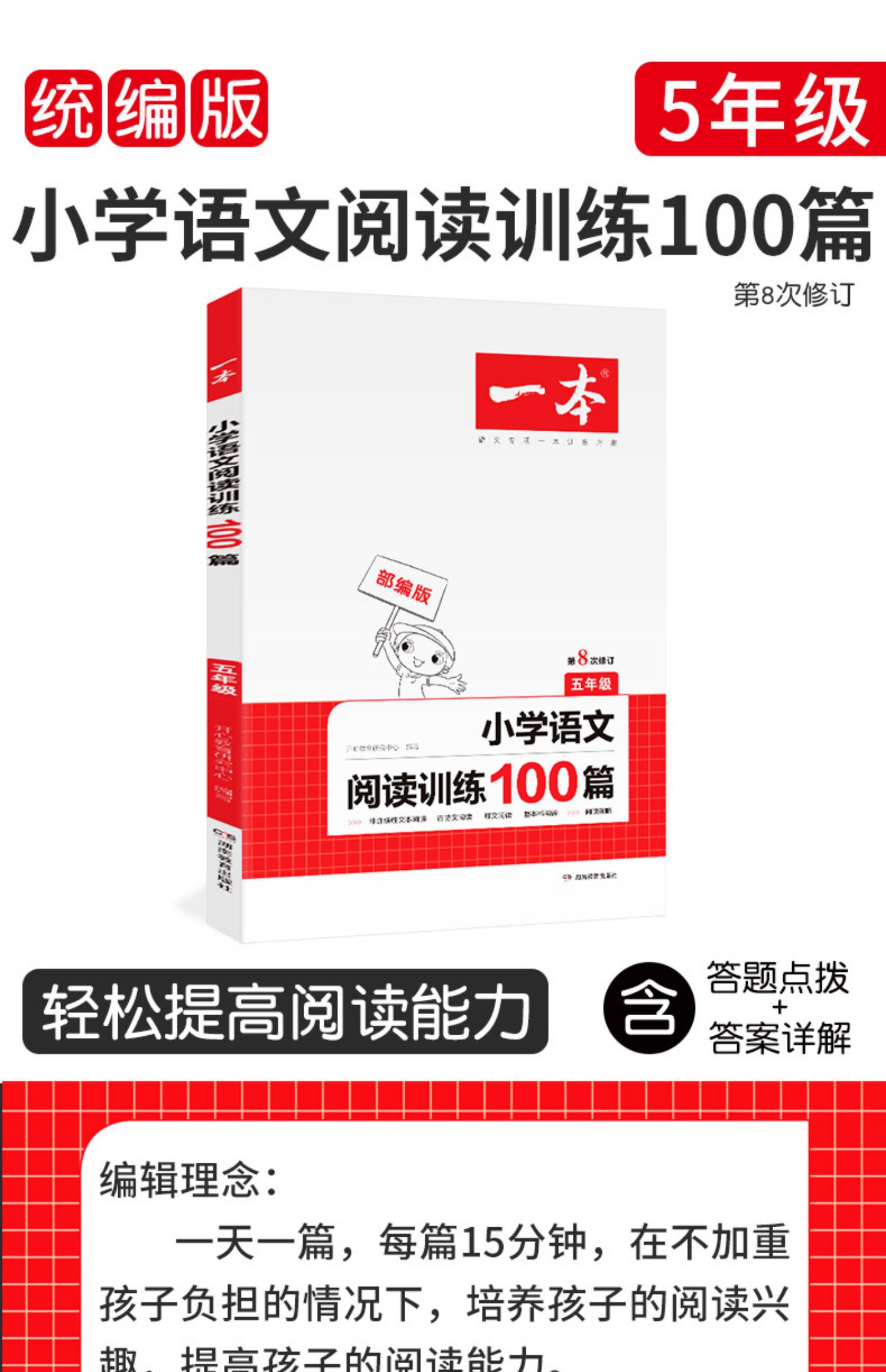 人教版每日一练阅读训练100篇五年级,紧扣题纲,准确命题,全国通用,难度适中,内容新颖,题材丰富。