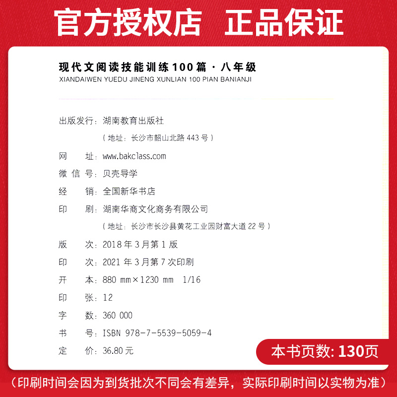 【人教版】新版一本现代文阅读技能训练100篇,初中八年级语文阅读辅导资料书,现代文阅读技能训练,全国通用版,【正品保证】
