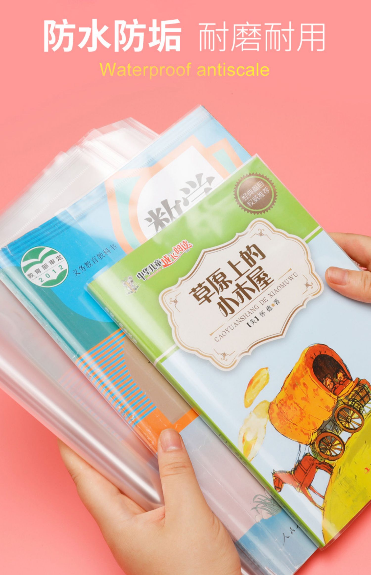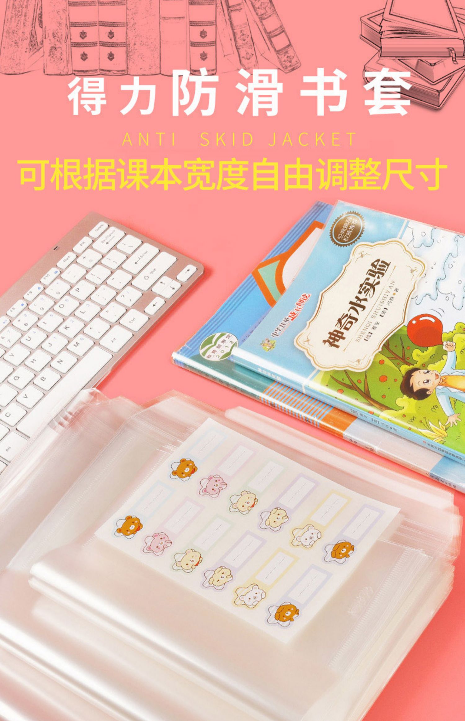 得力小学生书套,安全无毒环保材料,送36枚姓名贴,使用简单,具有高清透明,防滑,防水,多规格可选,耐磨耐用。