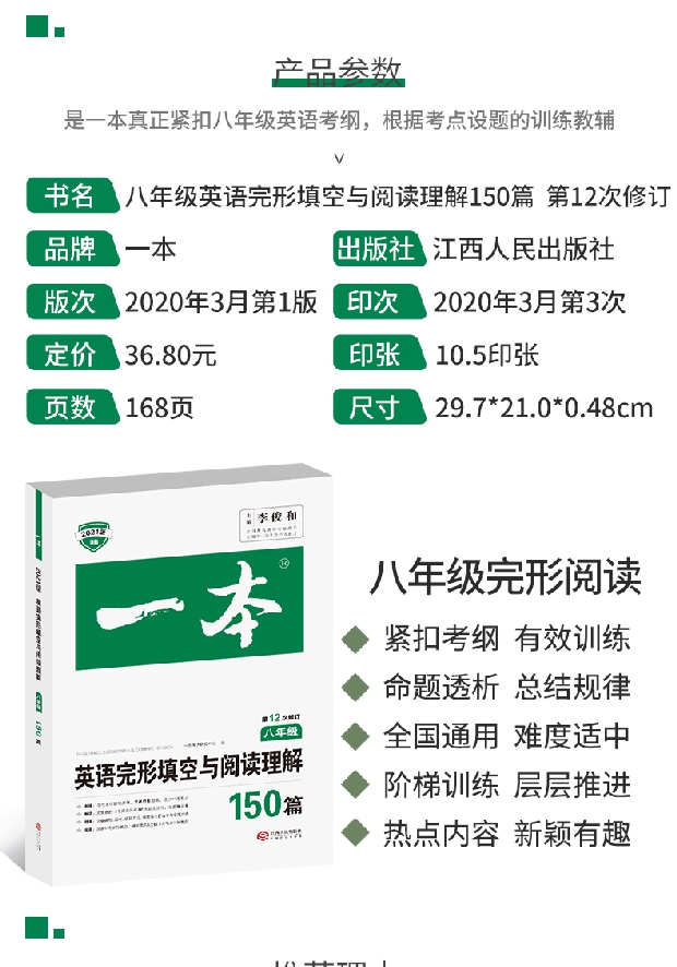 5.4秒杀!2022版一本七年级英语,完形填空与阅读理解,150篇,初中7年级上册下册阅读理解专项训练书,初一英语语法练习册题阅读组合训练资料仁爱