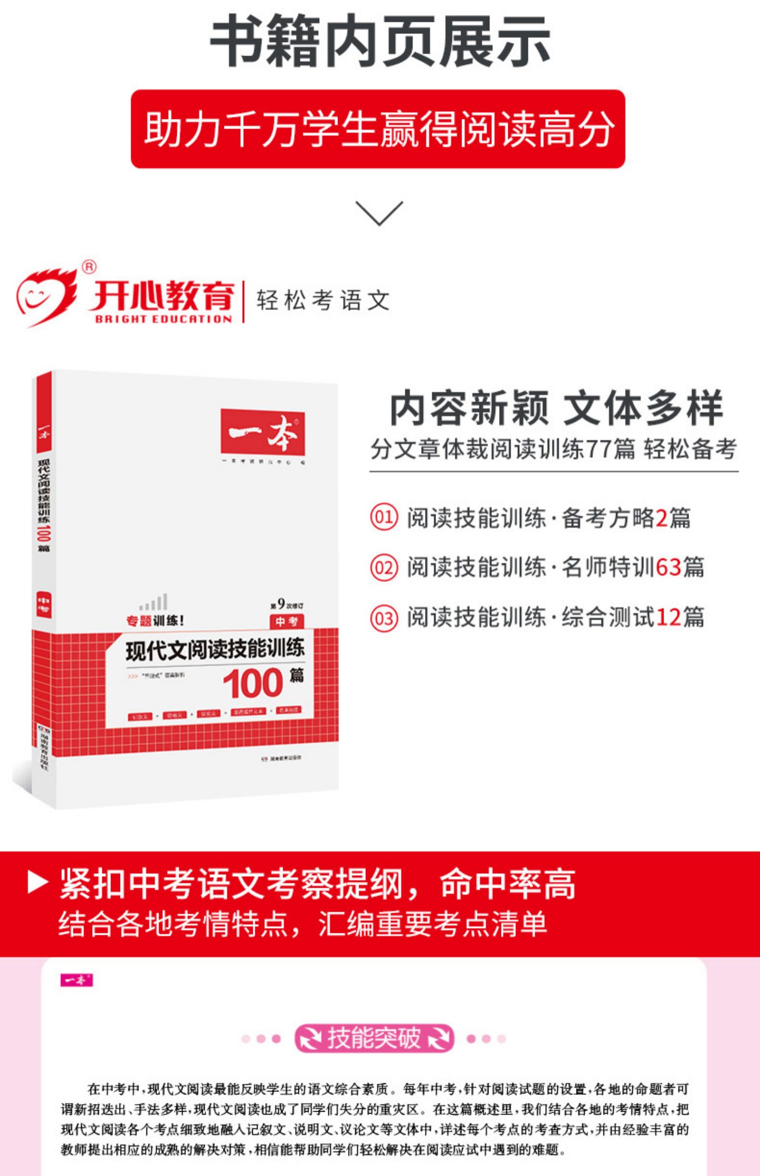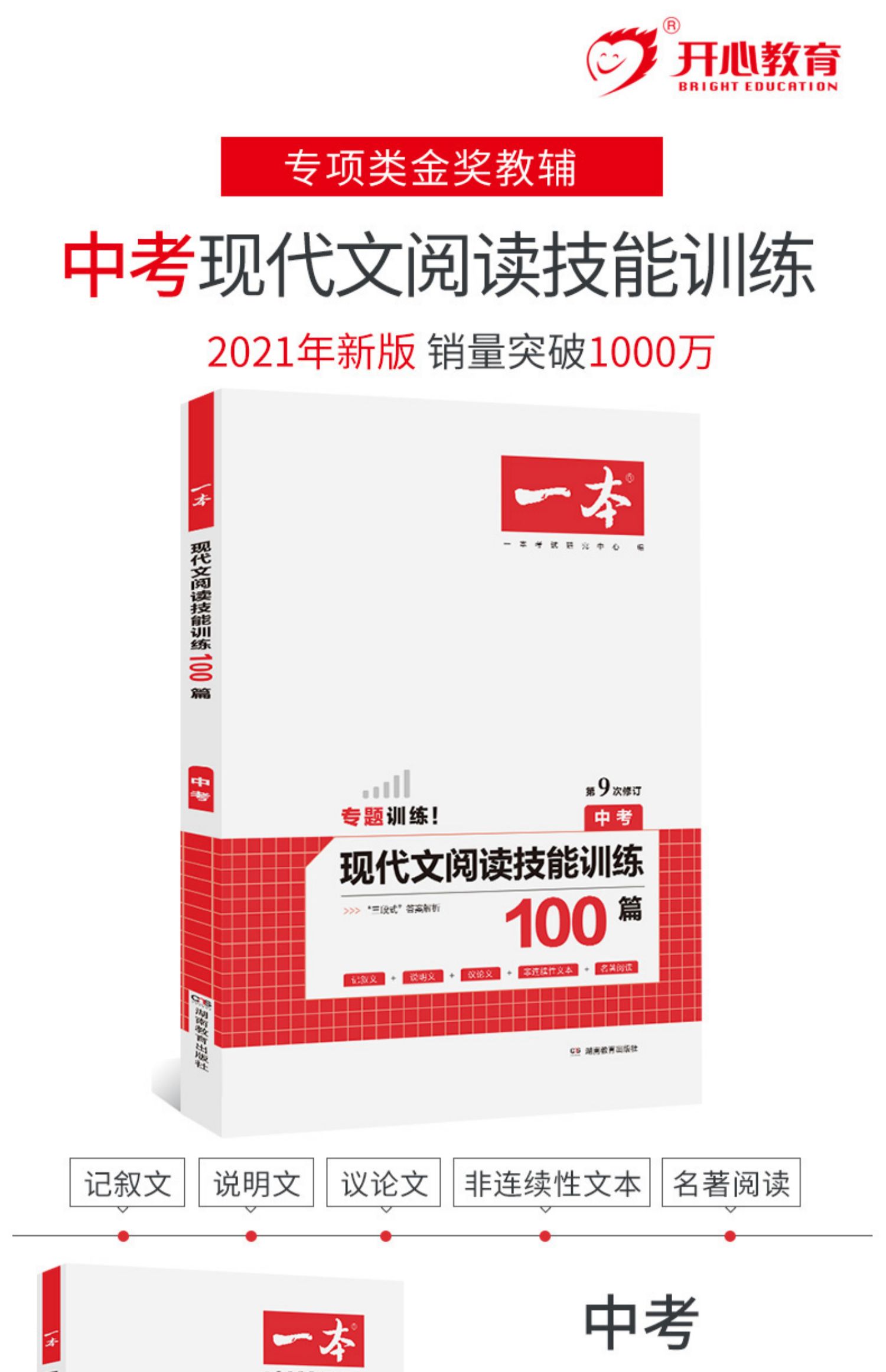 2022一本中考现代文,阅读技能训练100篇,人教版初中七八九年级语文阅读理解,必刷题现代文专项训练中考,初三语文课外阅读练习资料书