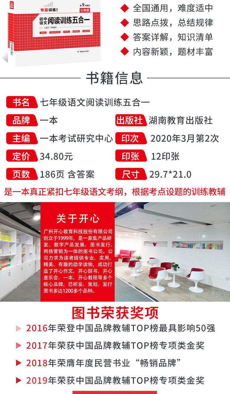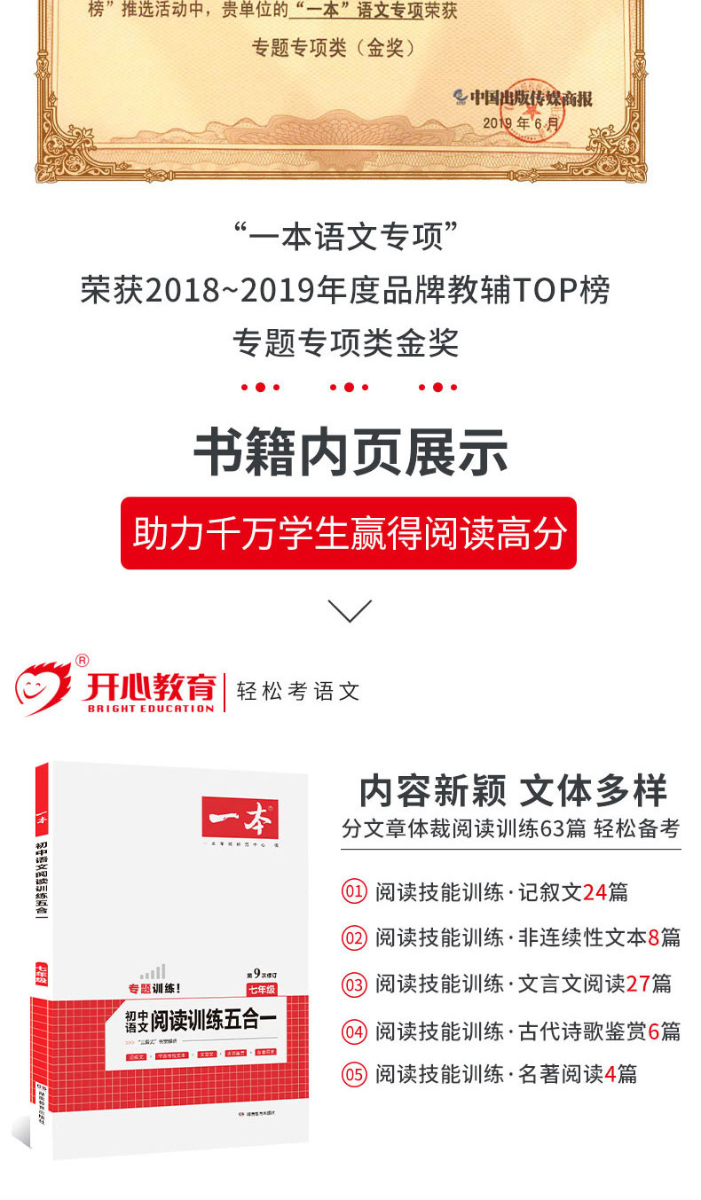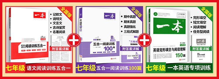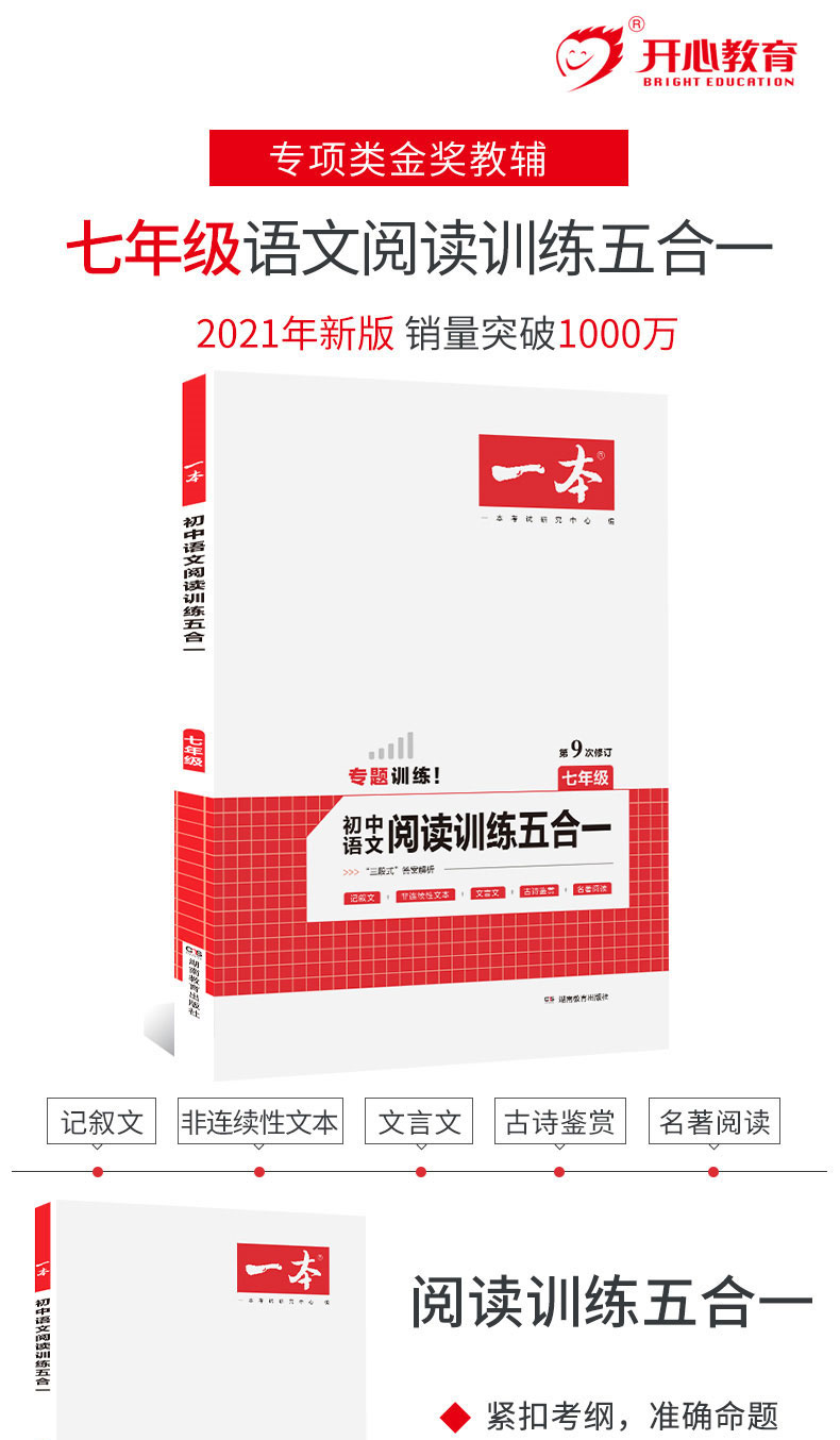 2022新版一本七年级现代文阅读技能。现代文文言文非连续性文本+诗词鉴赏+名著五合一,训练100篇通用版,初中7年级上册,语文组合专项训练,课外阅读理解,技能训练辅导资料书。