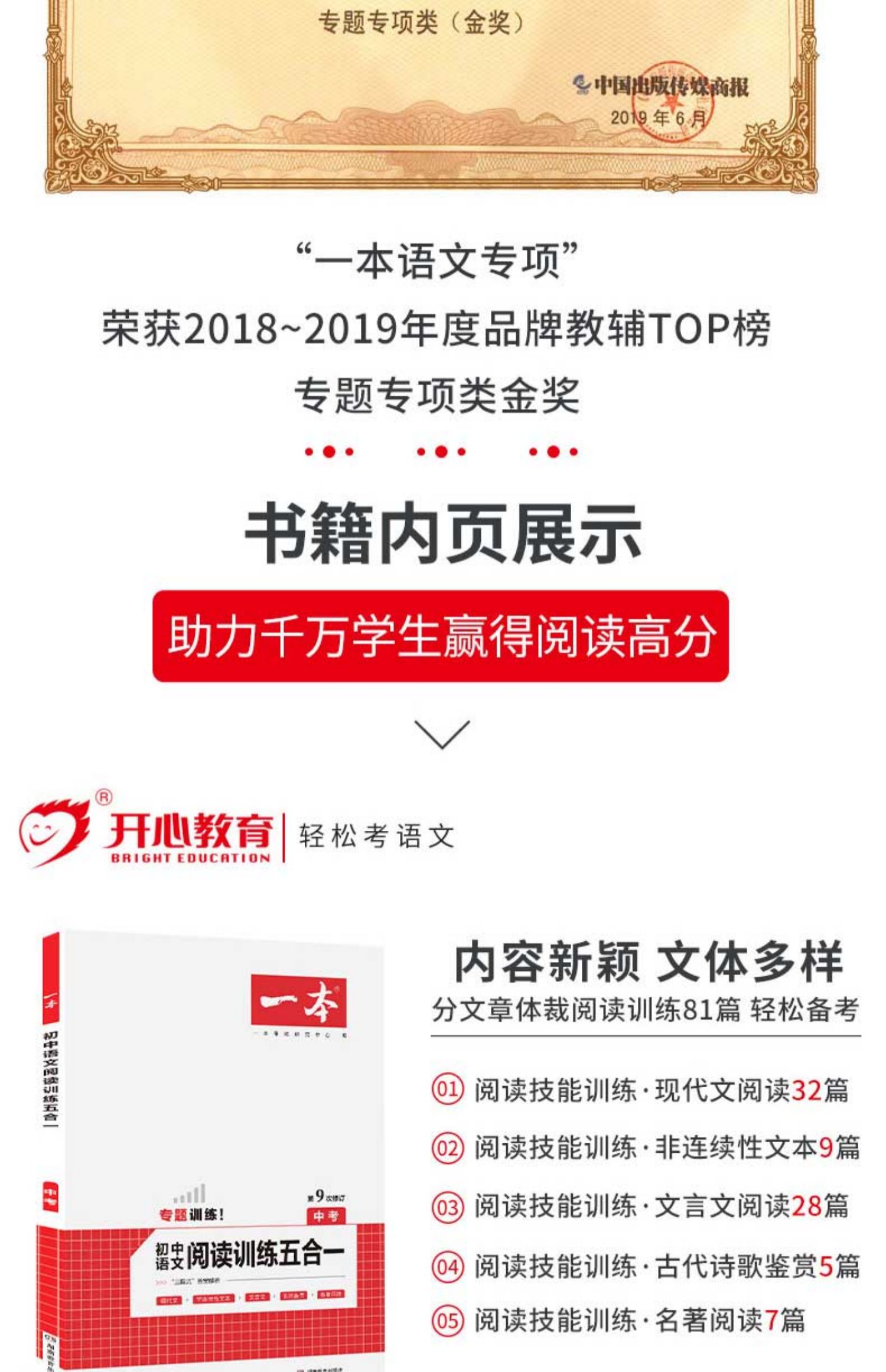 【推荐理由】新版一本现代文阅读技能训练100篇,初中语文阅读辅导资料书,现代文阅读技能训练,【正品保证】