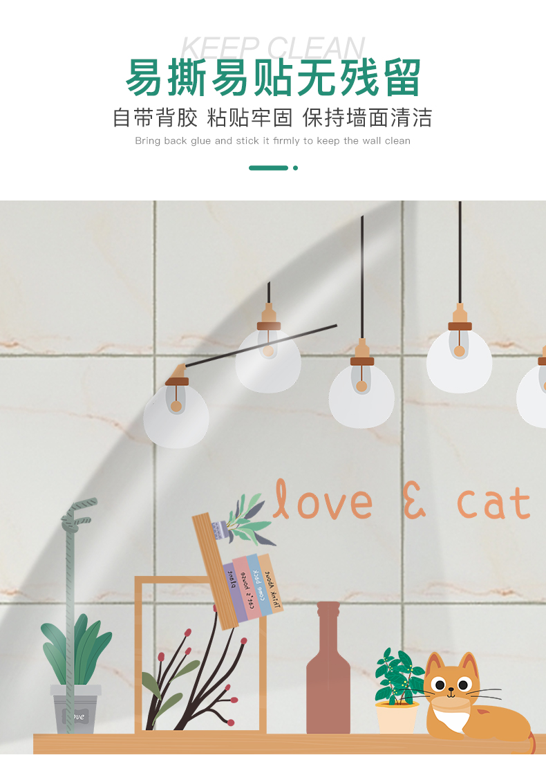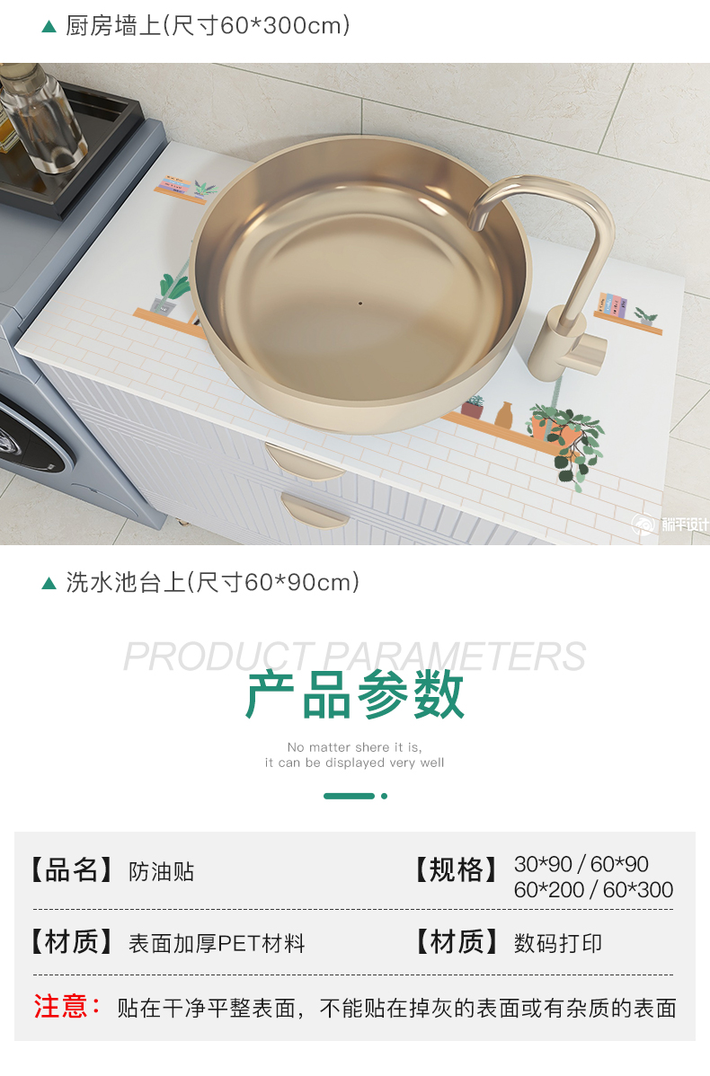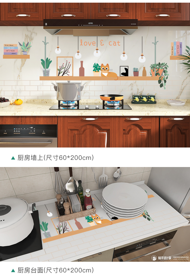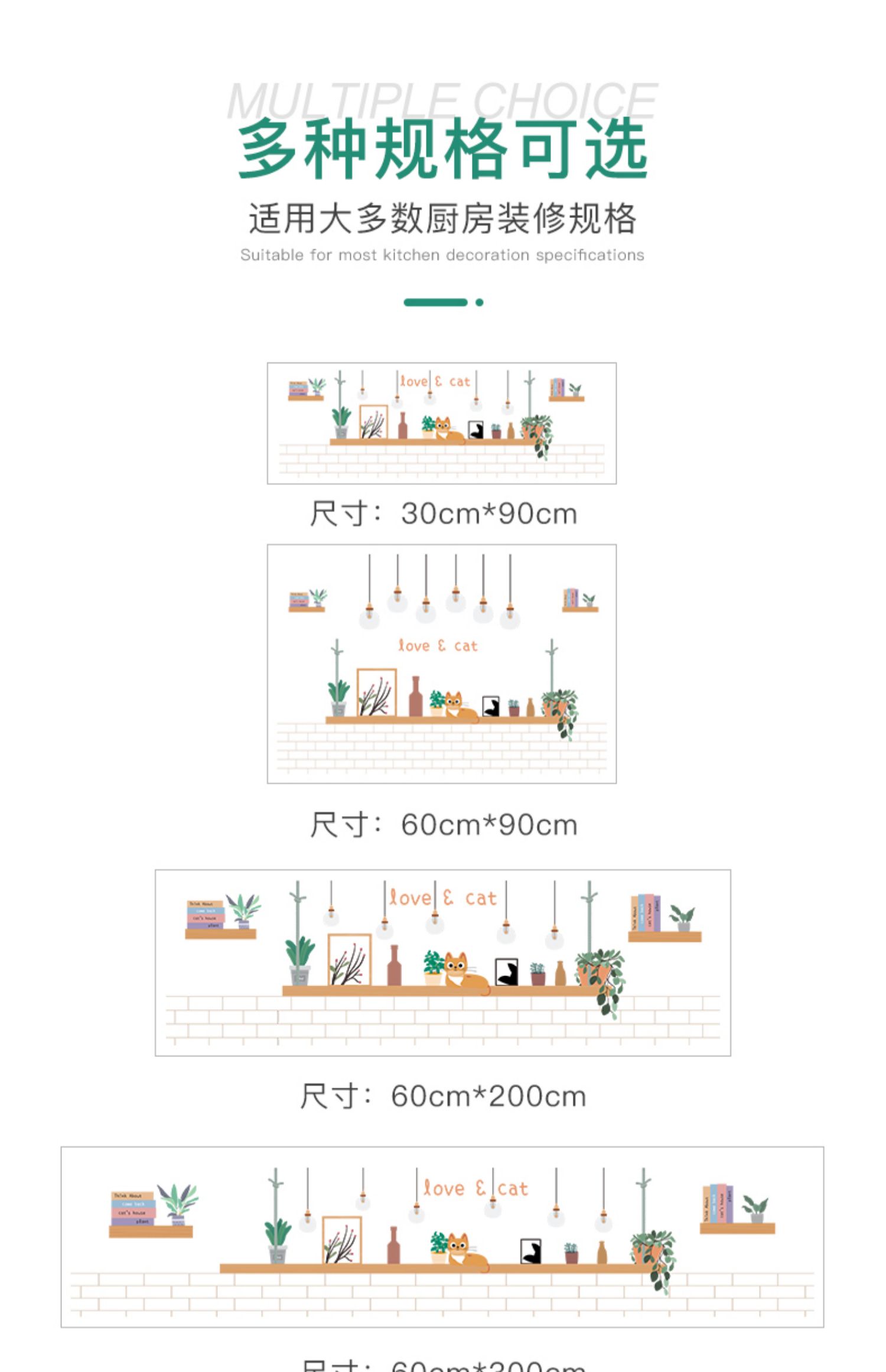 全新升级防油污贴纸,优选环保材质,不褪色,自由裁剪,耐高温,防污防潮,易清理,全新纹理,粘贴更美观,耐用,易贴易撕!让TA来给你一个靓丽的厨房!