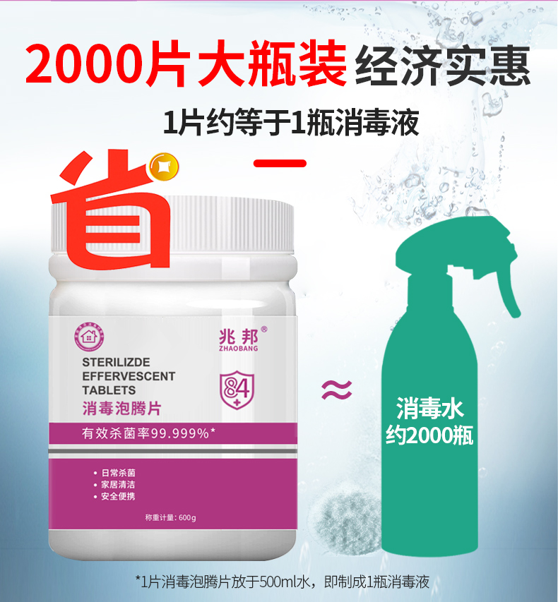 【推荐理由】1瓶100片,1瓶可泡腾60斤消毒液,亲肤不伤手不刺激,衣物清洗,厕所浴缸漂白,居家专用,健康之选,速抢!