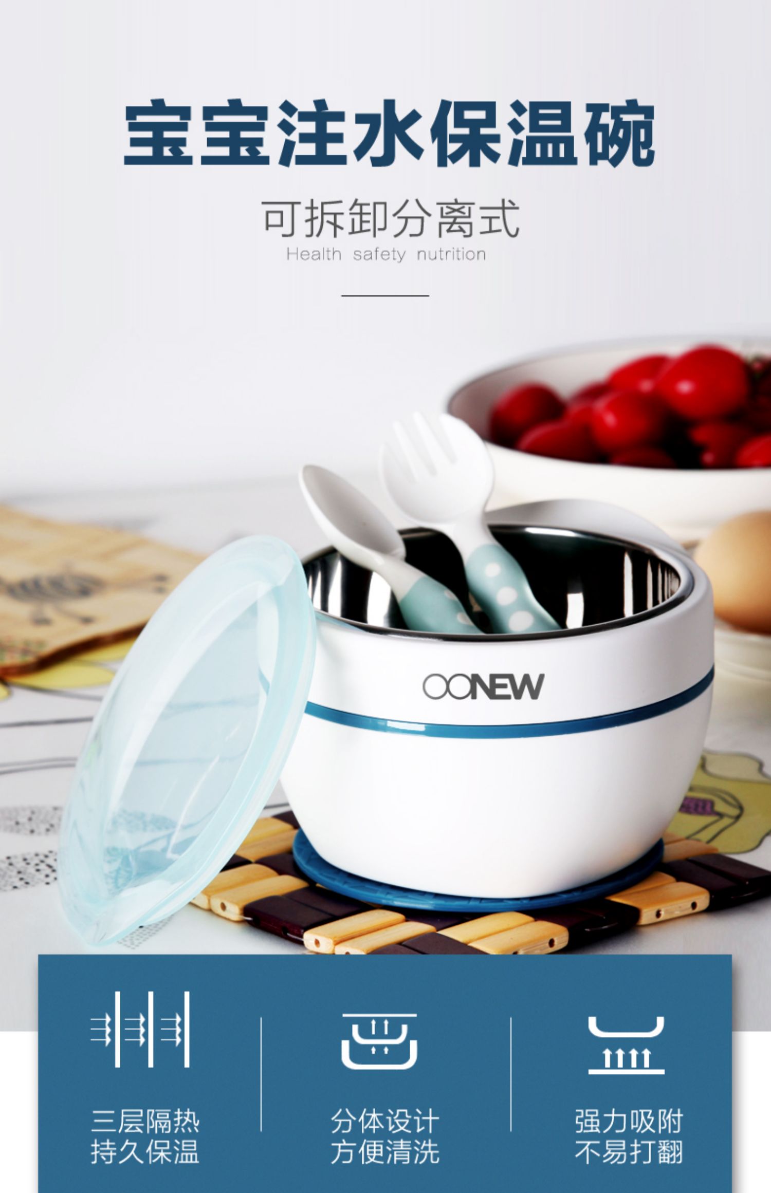 食用级pp不锈钢材质,不含双酚A,耐热耐摔不易滋生细菌,注水控温,强力吸盘,防止弄翻,密封盖密实,免费刻字,专属宝宝自己的餐具【赠运费险】