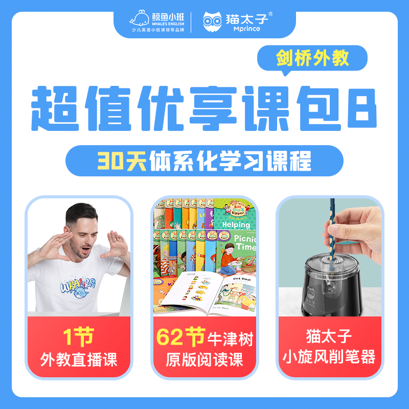 【直播课+62节牛津树原版阅读课+电动削笔器】超值优享课包,30天体系化学习课程,剑桥外教授课,同步英美真实课堂,选对品牌,家长更放心!